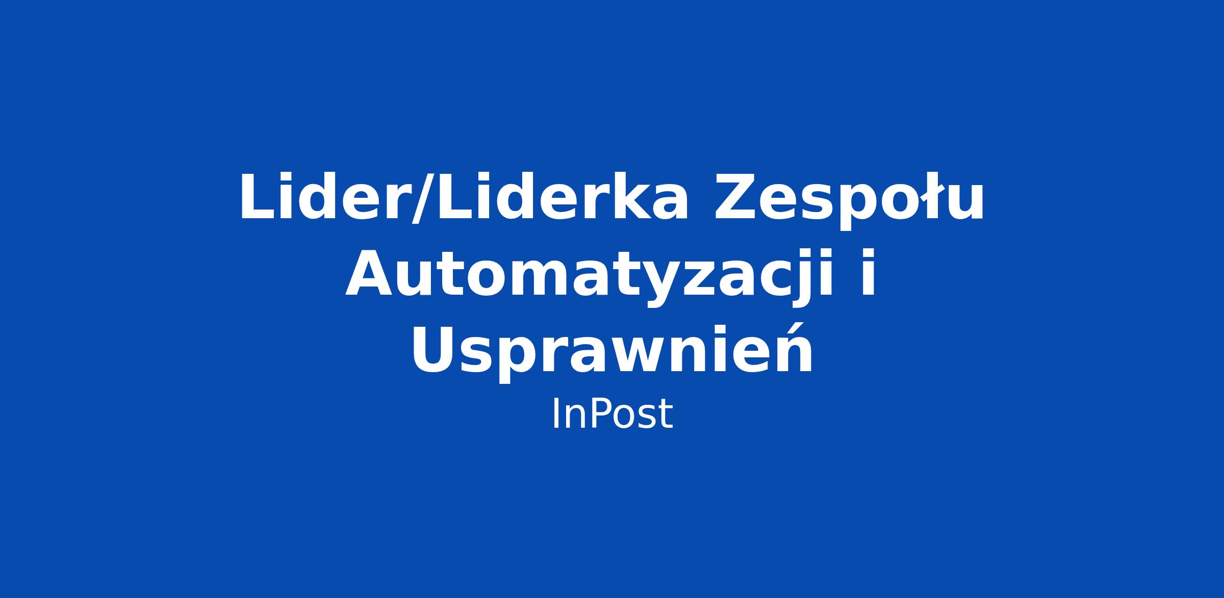 Lider/Liderka Zespołu Automatyzacji i Usprawnień