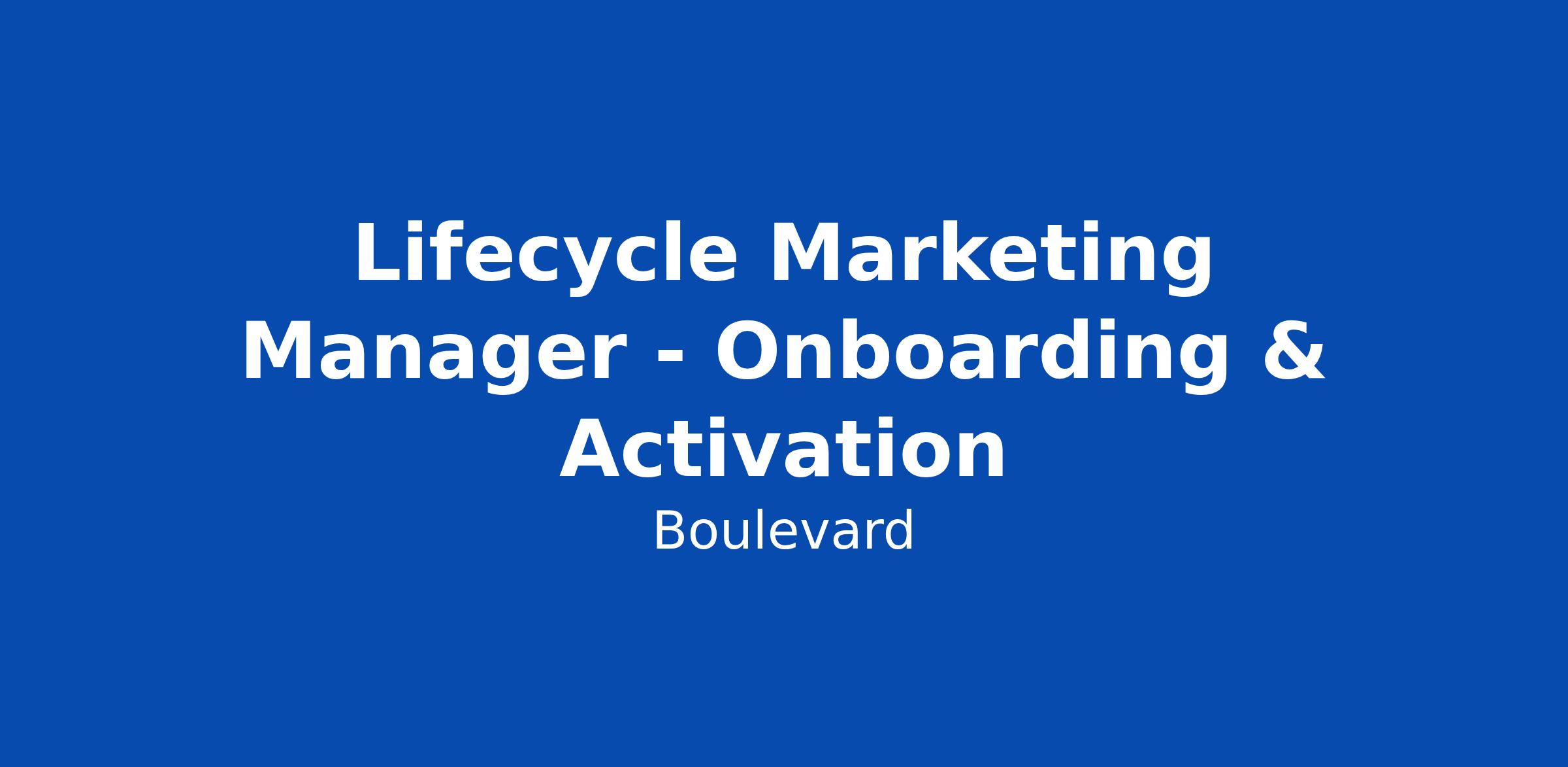 Lifecycle Marketing Manager - Onboarding & Activation