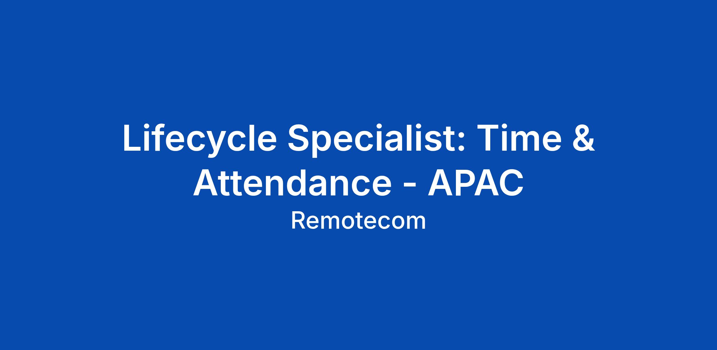 Lifecycle Specialist: Time & Attendance - APAC