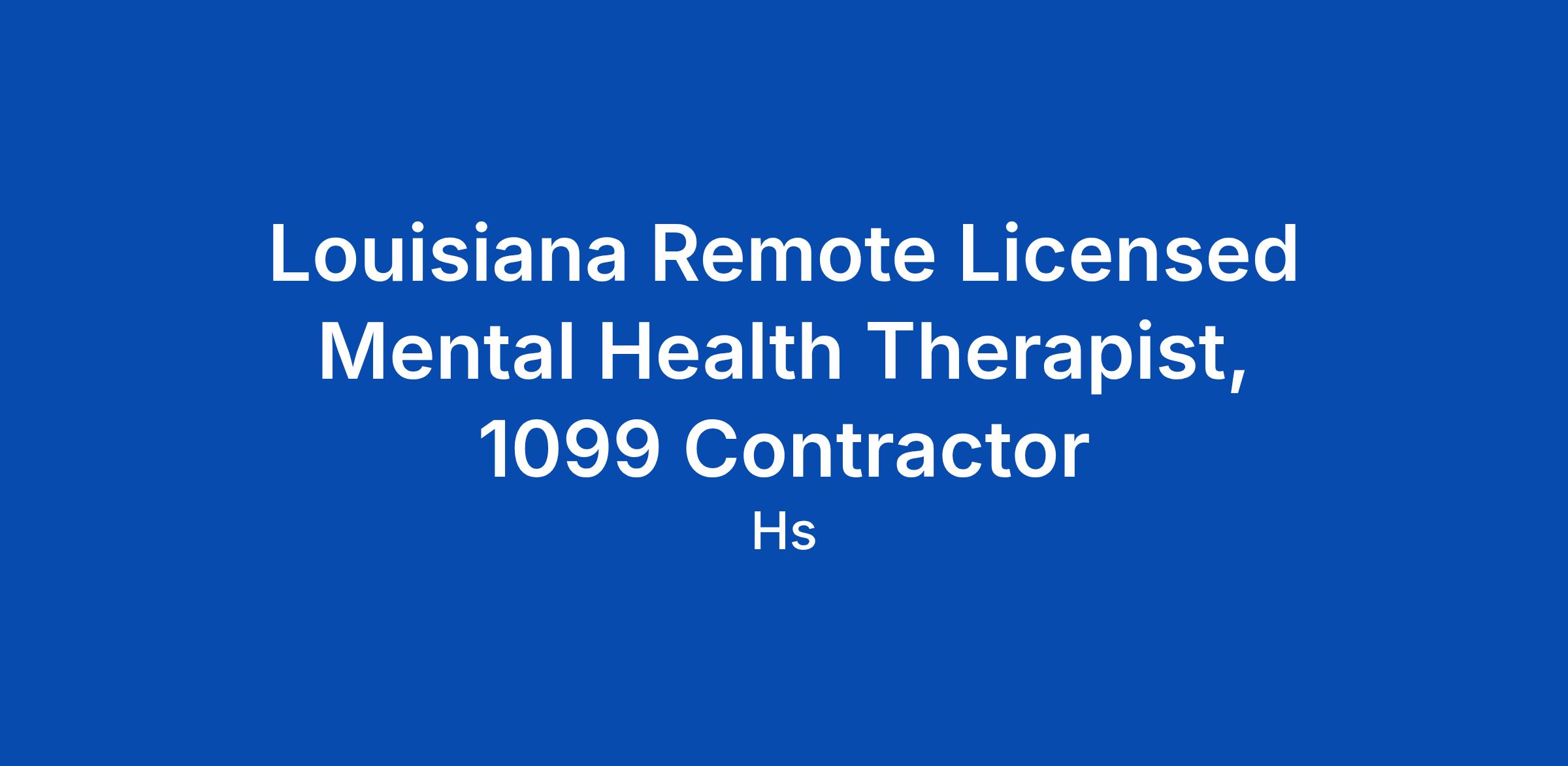 Louisiana Remote Licensed Mental Health Therapist, 1099 Contractor