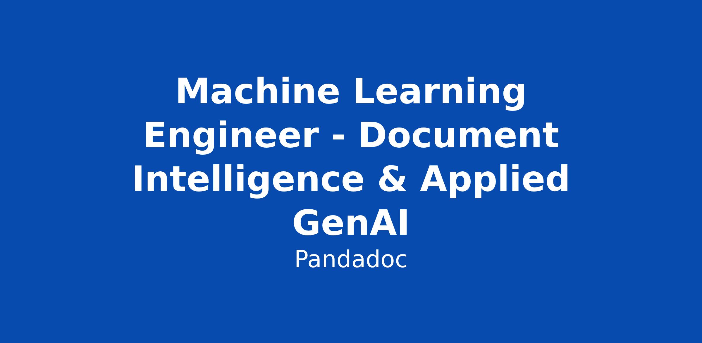 Machine Learning Engineer - Document Intelligence & Applied GenAI