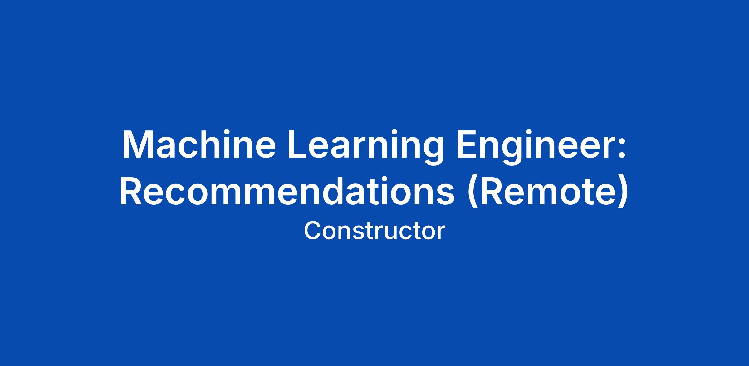 Machine Learning Engineer: Recommendations (Remote)