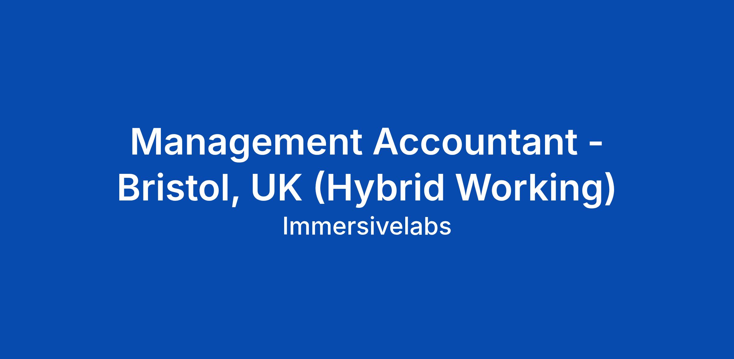 Management Accountant - Bristol, UK (Hybrid Working)