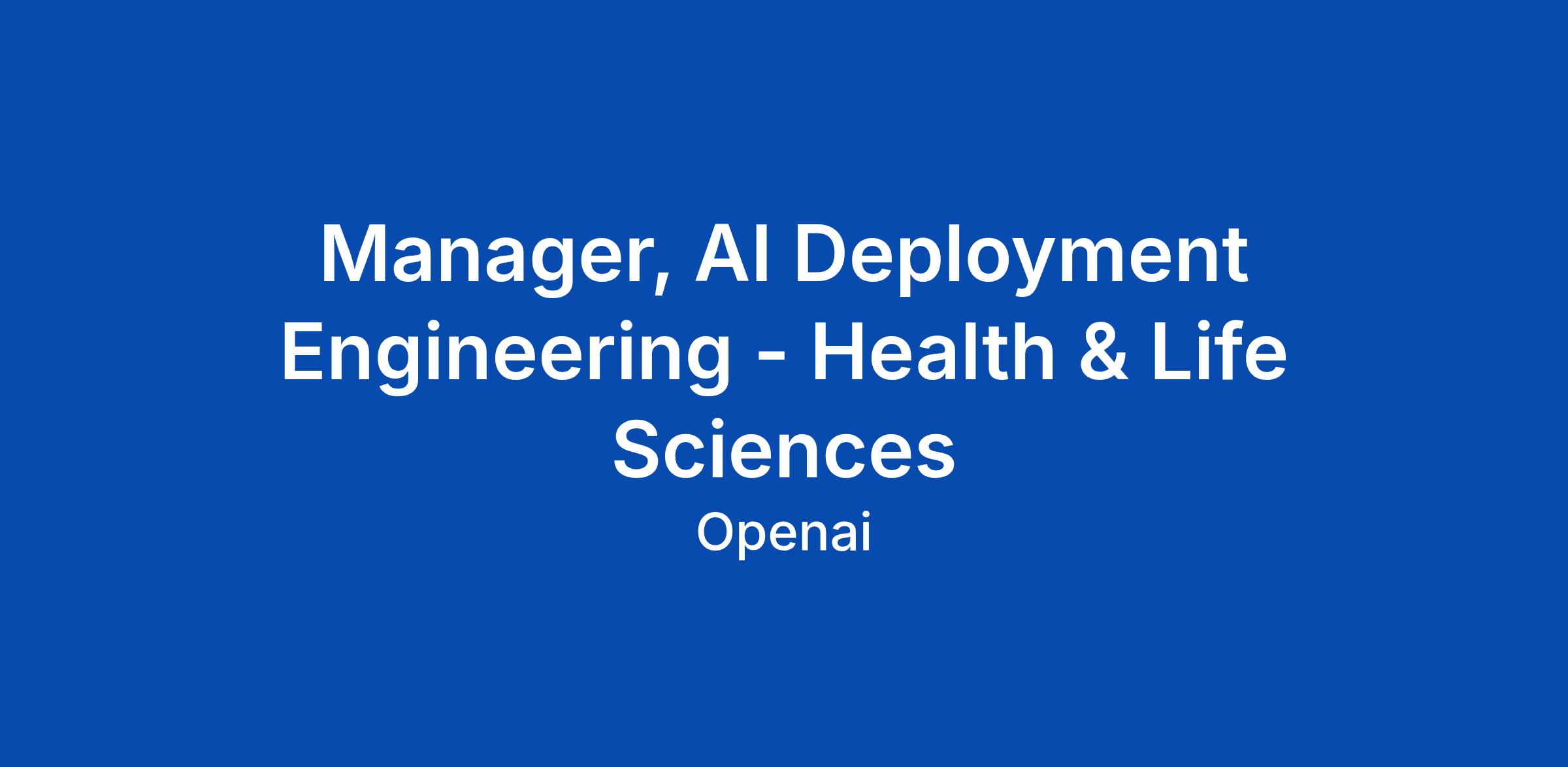 Manager, AI Deployment Engineering - Health & Life Sciences