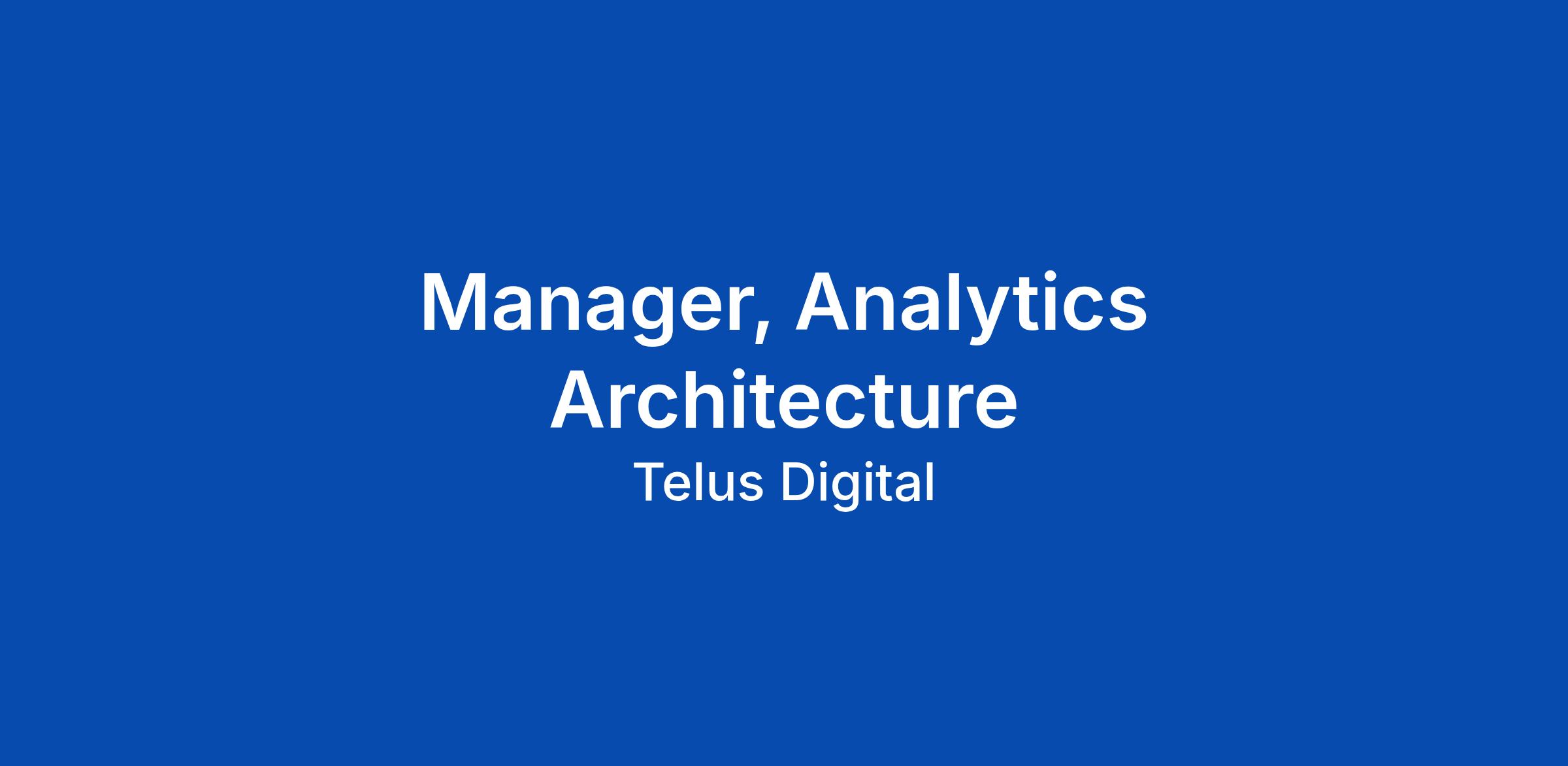 Manager, Analytics Architecture