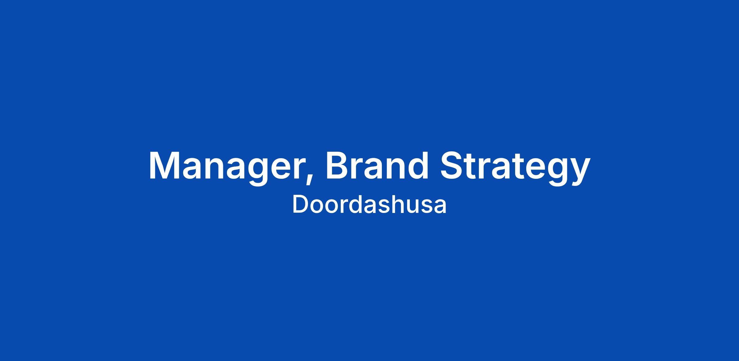 We’re looking for a Manager, Brand Strategy to sit at the intersection of Brand Strategy and Creative Strategy — shaping both the foundation of the DoorDash brand and how it shows up in our most important moments.