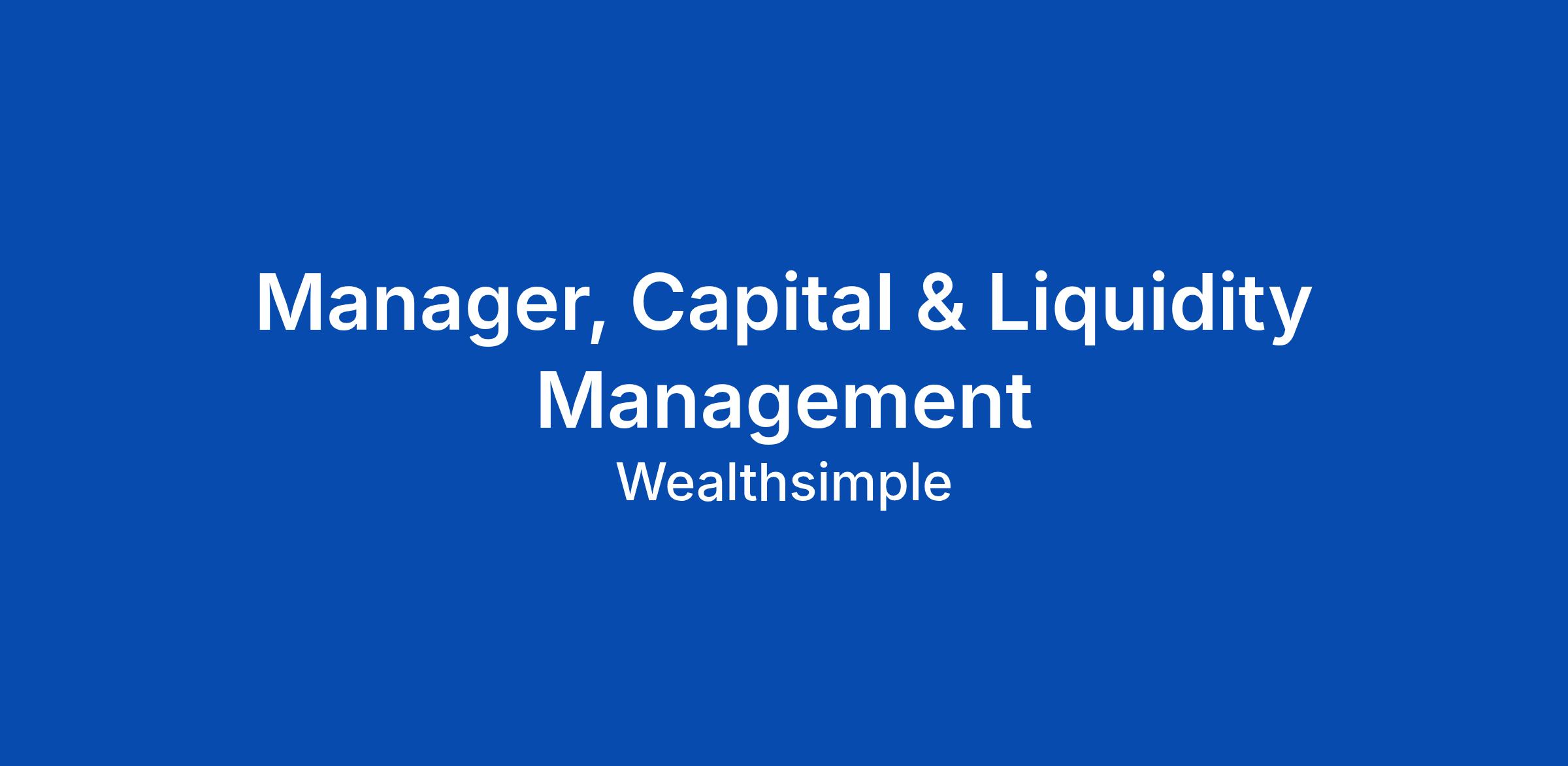 Manager, Capital & Liquidity Management