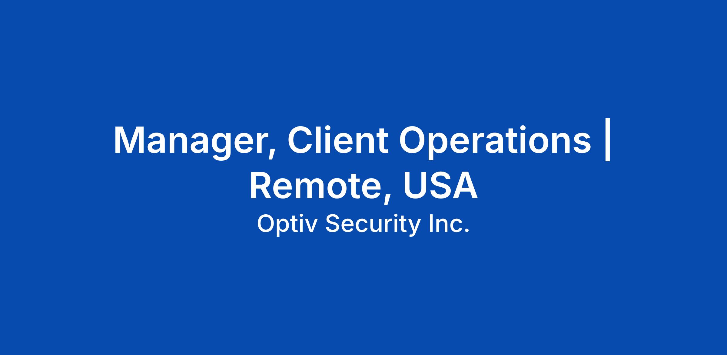 Optiv is an equal opportunity employer. All qualified applicants for employment will be considered without regard to race, color, religion, sex, gender identity or expression, sexual orientation, pregnancy, age 40 and over, marital status, genetic information, national origin, status as an individual with a disability, military or veteran status, or any other basis protected by federal, state, or local law.