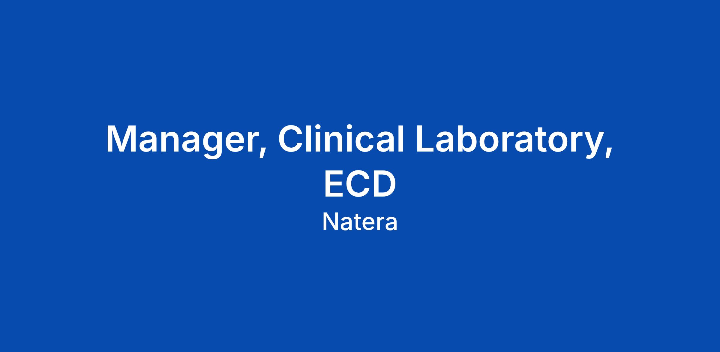Manager, Clinical Laboratory, ECD