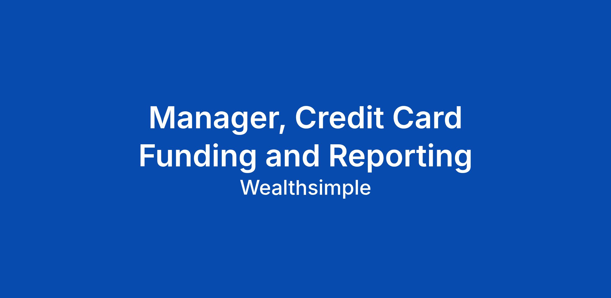 Manager, Credit Card Funding and Reporting