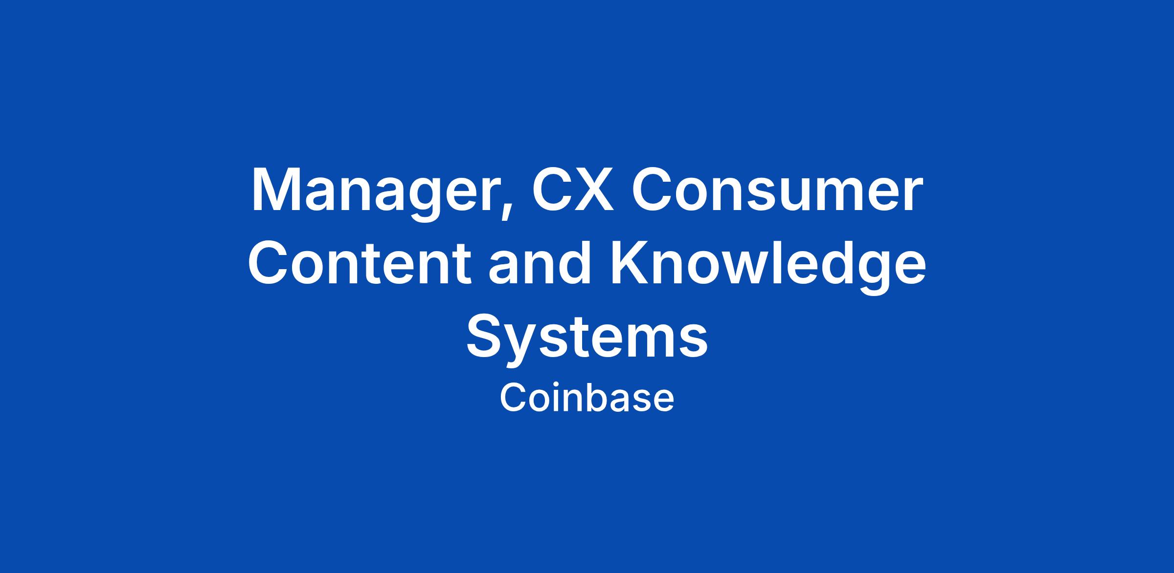Manager, CX Consumer Content and Knowledge Systems