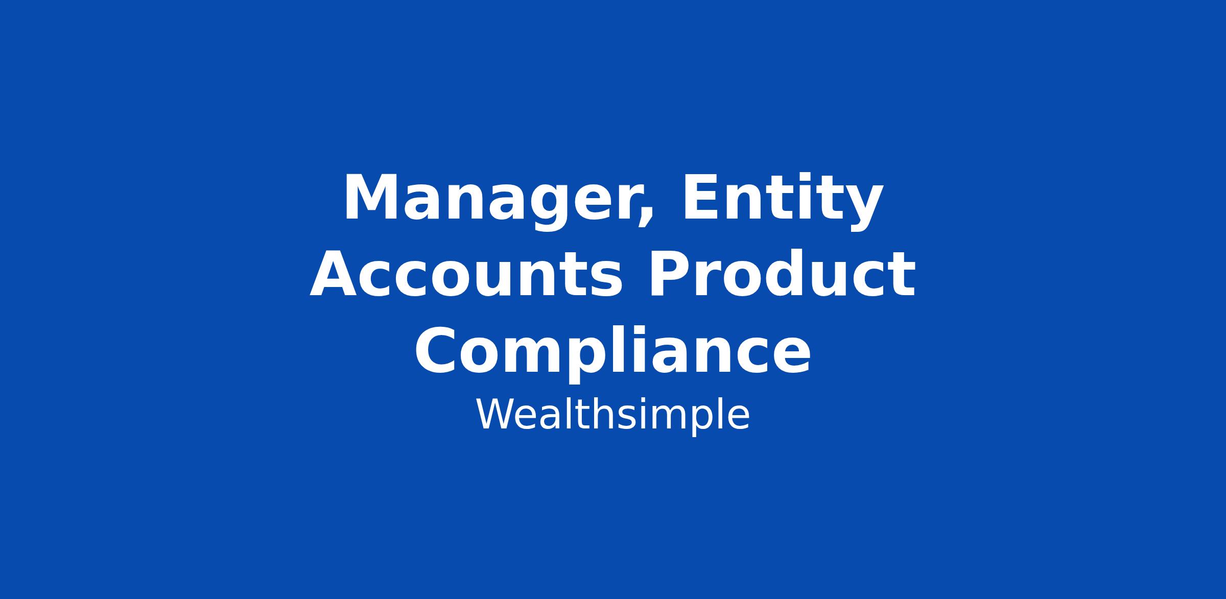 Manager, Entity Accounts Product Compliance