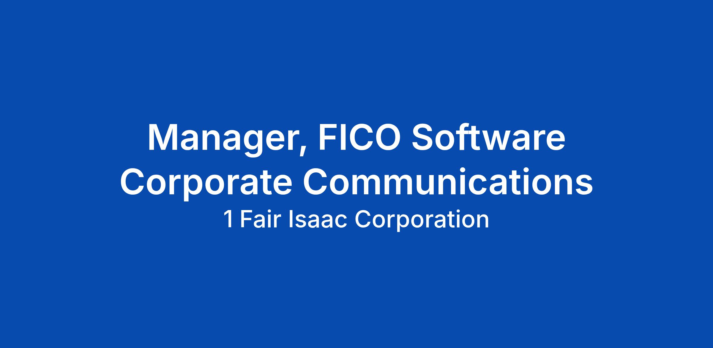 "As a Manager of Communications at FICO, you’ll play a pivotal role in shaping and elevating the narrative around FICO’s Software business. In this position, you’ll help amplify the company’s software and analytics story across earned, paid and owned media channels. You’ll partner closely with product, marketing, and executive teams to drive visibility for key initiatives—including product launches, technology innovations, customer success stories, strategic partnerships, and major corporate announcements. You’ll also support executive thought leadership by developing angles, securing high-impact media opportunities, and ensuring consistent, strategic positioning across platforms. This role will contribute to event and speaker programs, helping prepare leaders for industry conferences, media interviews, and customer engagements. We’re looking for someone with sharp media instincts, strong storytelling skills, and the ability to translate complex B2B technology topics into clear, engaging narratives. Success in this role requires comfort operating in a fast-paced environment, sound judgment, and a proactive, collaborative approach to communications." - Corporate Communications - VP