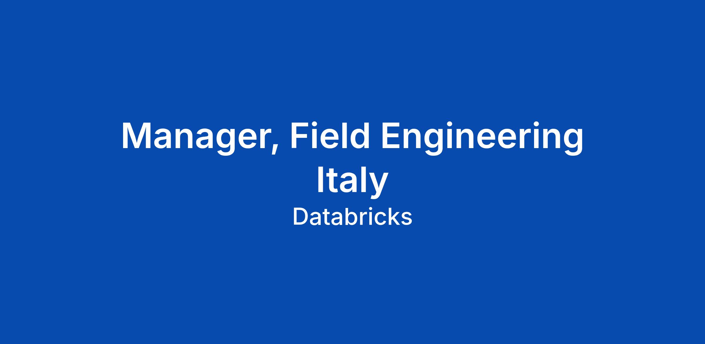 Manager, Field Engineering Italy