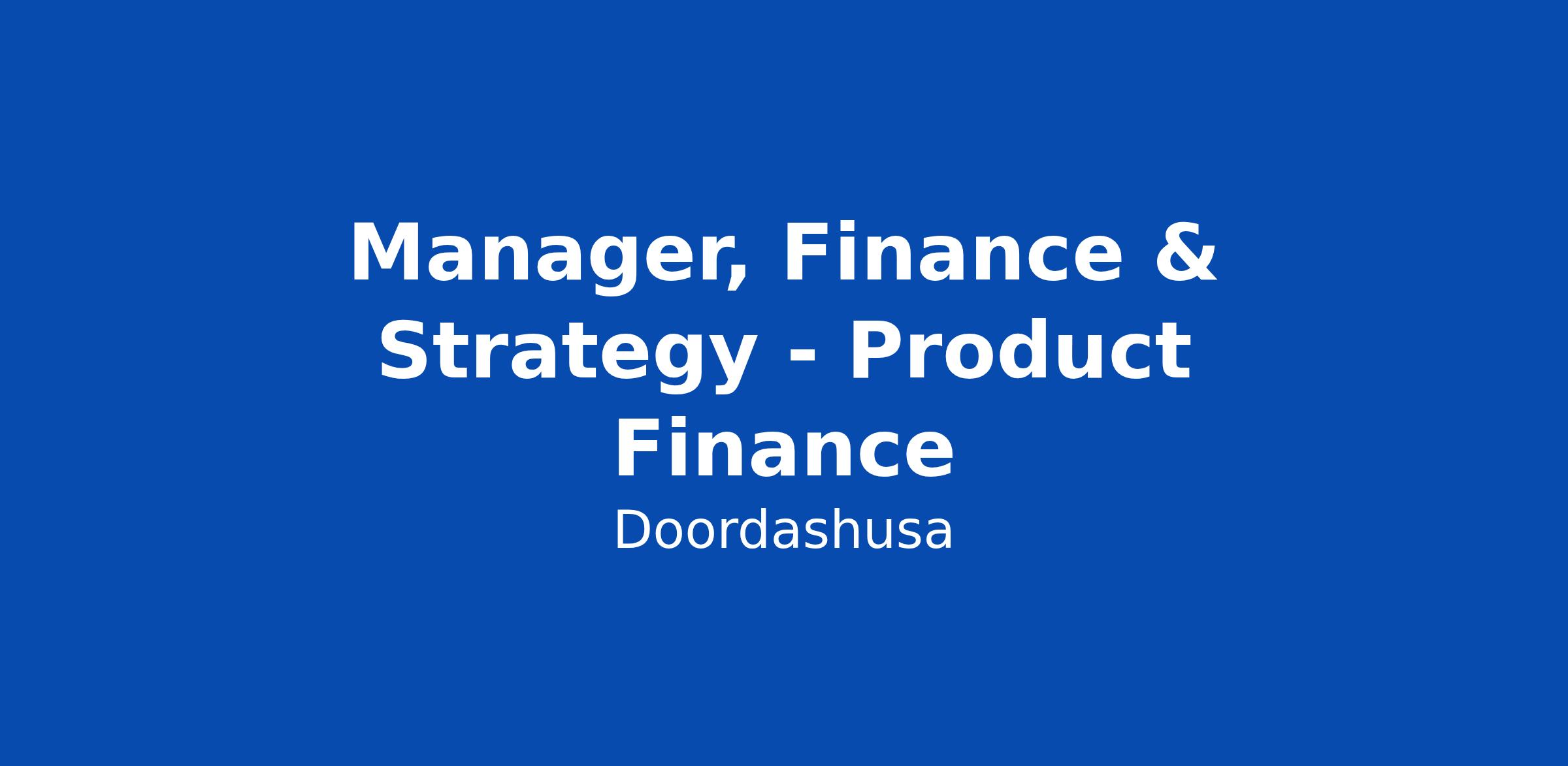 Manager, Finance & Strategy - Product Finance