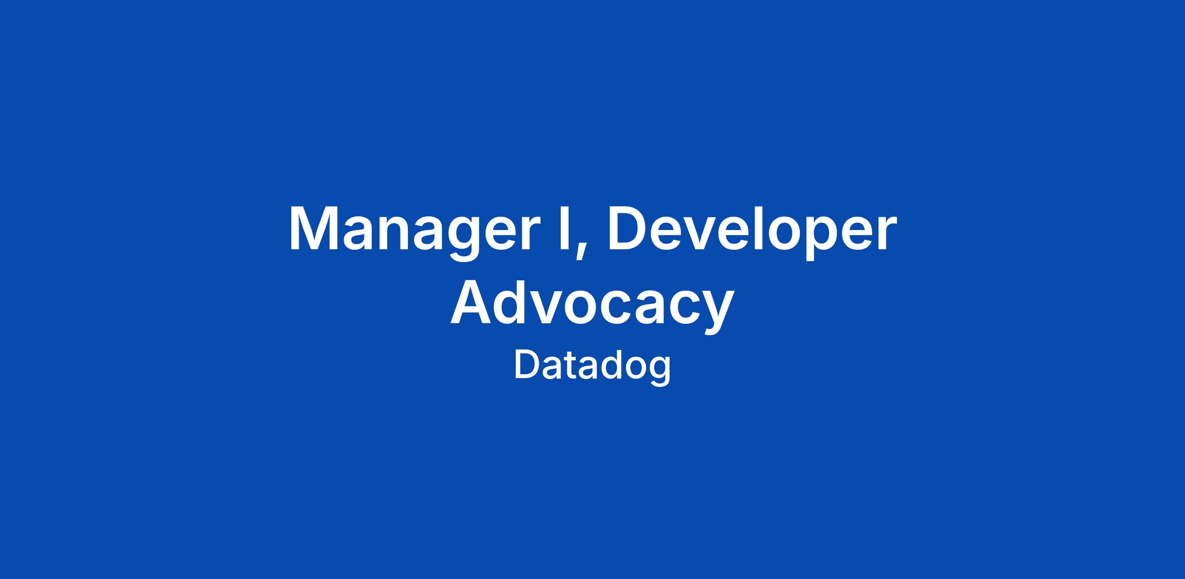 Manager I, Developer Advocacy