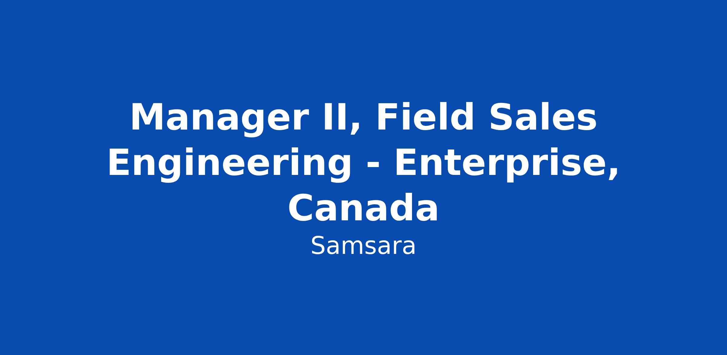 Manager II, Field Sales Engineering - Enterprise, Canada