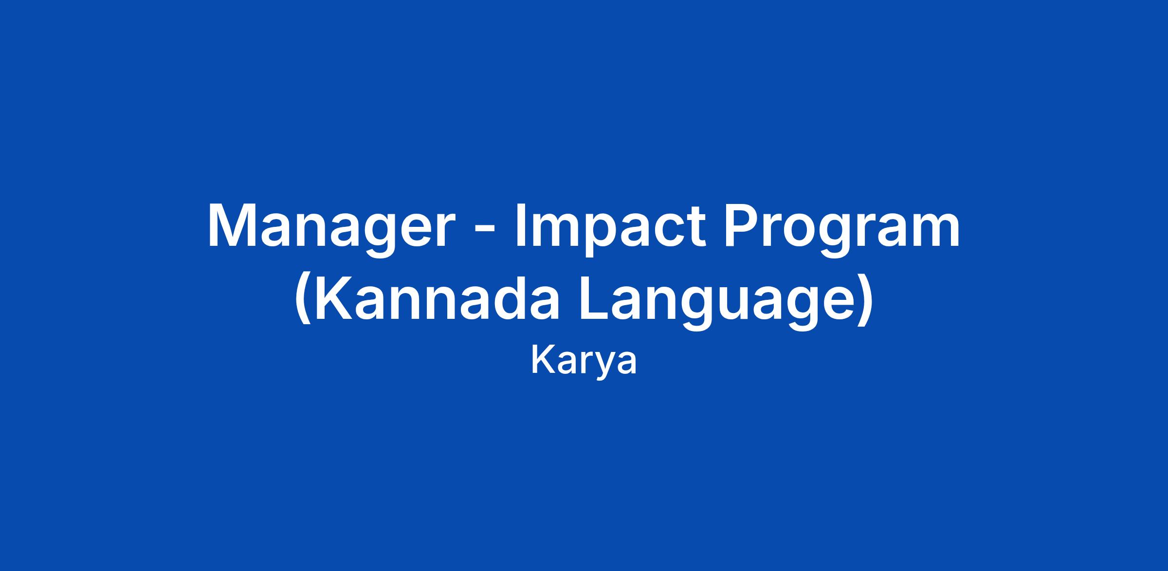We are looking for an organised and proactive individual to fill a hybrid role as a Manager - Impact Program in the Kannada Language.Β
