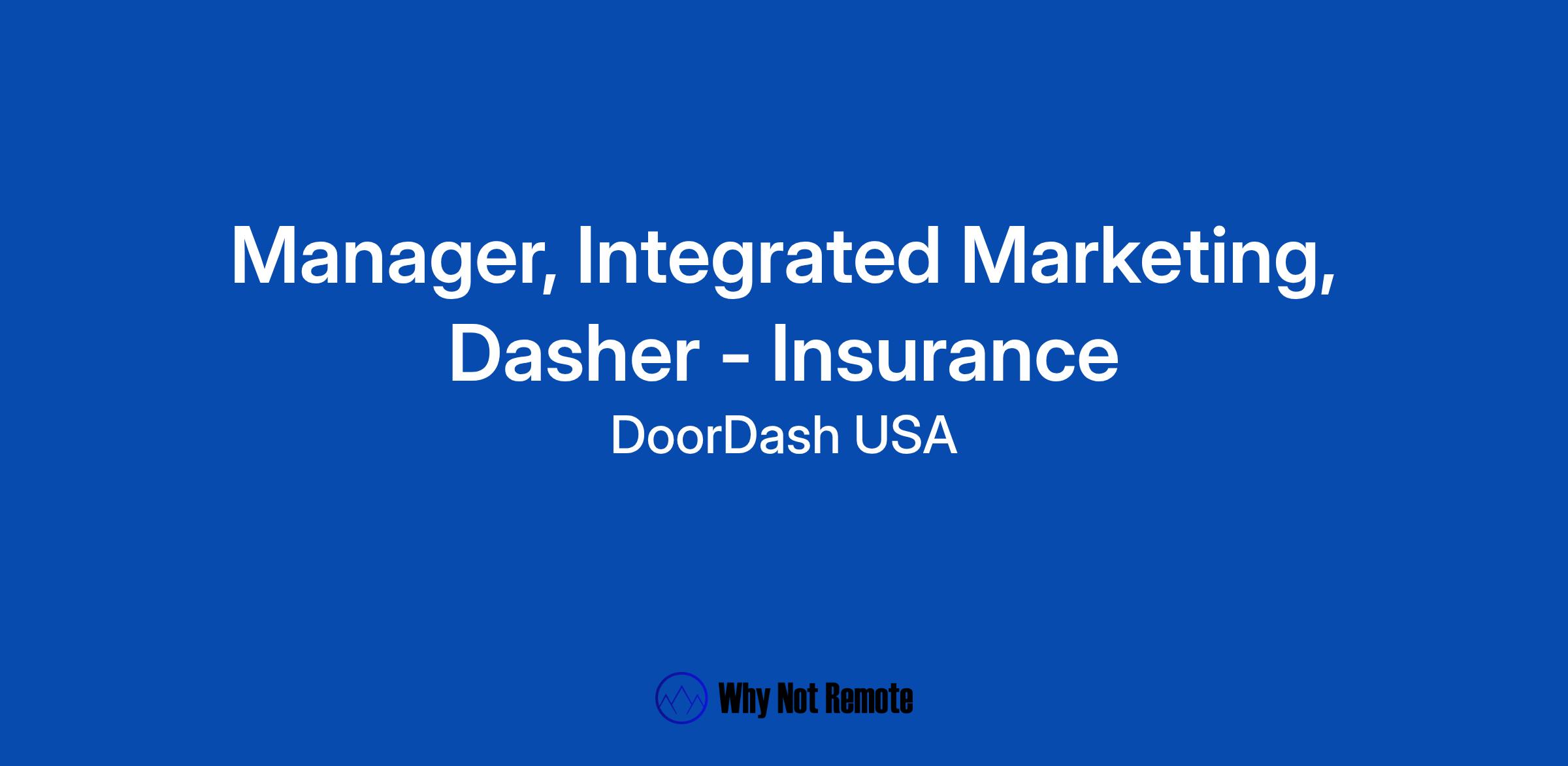 The Dasher Integrated Marketing team is looking for a strategic, entrepreneurial, and data-driven marketer to grow DoorDash's Marketplace. The Dasher Product Marketing Experience team is looking for a strategic, data-driven, and execution-focused Insurance Product Marketing Manager to lead go-to-market strategy and lifecycle engagement for our future suite of Dasher insurance products. You will be the connective tissue between Product, Legal, Compliance, and CX—ensuring our insurance programs drive value for Dashers, reduce business risk, and reinforce DoorDash’s trust and safety commitments.
