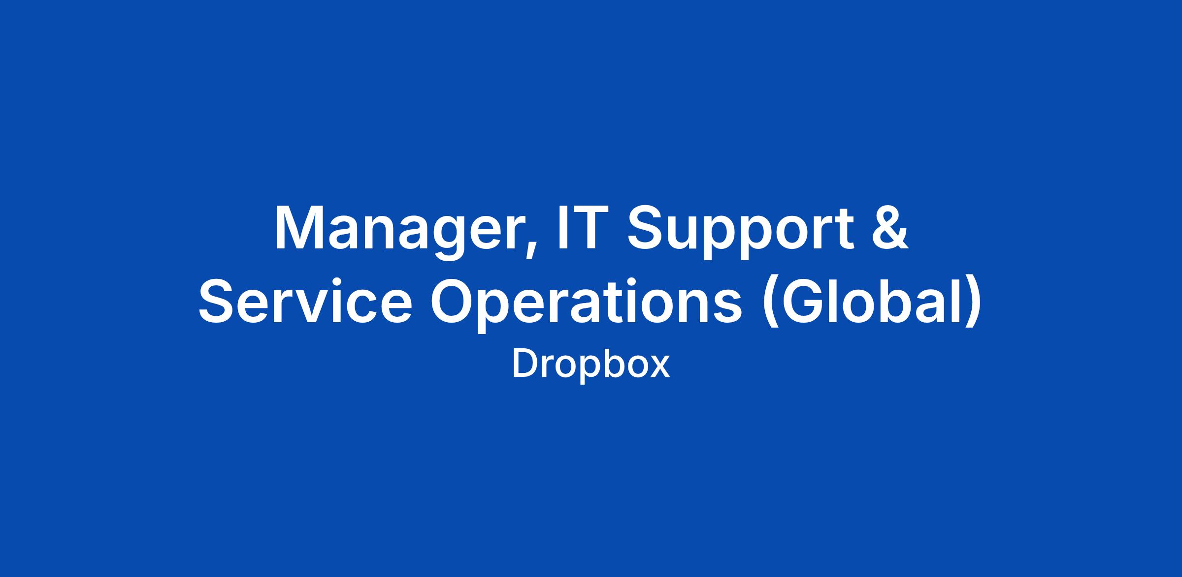At Dropbox, we believe support should feel effortless. Getting help should be fast, intuitive, and even delightful β not a ticket into a black hole. Weβre looking for a Global IT Service Operations Manager to reimagine and elevate the end-to-end support experience for every Dropboxer, shaping how support feels across the company β from AI-powered self-service to frontline helpdesk, from seamless Day-1 hardware readiness to high-touch executive support.