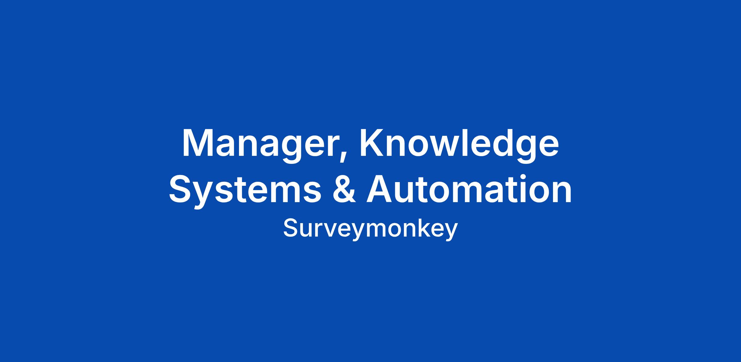 At SurveyMonkey, we’re empowering millions of people to unlock value from their data through intuitive, intelligent self‑service experiences. We’re looking for a forward‑thinking leader to execute our self‑service strategy across our Help Ce... Click Apply to read the full job description.