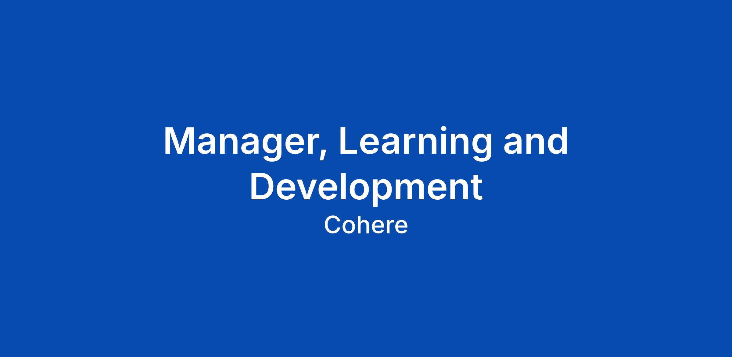 Who are we? Our mission is to scale intelligence to serve humanity. Weβre training and deploying frontier models for developers and enterprises who are building AI systems to power magical experiences like content generation, semantic search, RAG, and agents. We believe that our work is instrumental to the widespread adoption of AI. We obsess over what we build. Each one of us is responsible for contributing to increasing the capabilities of our models and the value they drive for our customers. We like to work hard and move fast to do whatβs best for our customers. Cohere is a team of researchers, engineers, designers, and more, who are passionate about their craft. Each person is one of the best in the world at what they do. We believe that a diverse range of perspectives is a requirement for building great products. Join us on our mission and shape the future! Role Overview The Learning and Development Manager will have the unique opportunity to build the L&D function from scratch at Cohere. This senior level individual contributor role is critical to establishing a foundation for continuous learning and skill development as the company grows. Youβll design, implement, and scale