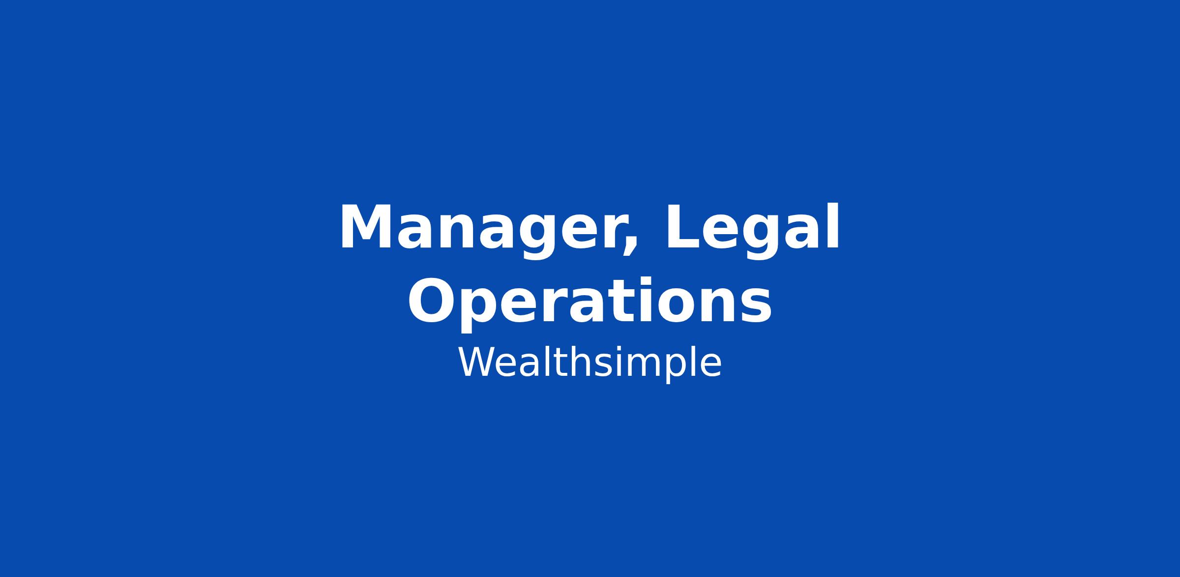 BUILD SOMETHING PEOPLE LOVE Wealthsimple's mission is to help everyone achieve financial freedom – by making financial services simple, transparent, and low-cost. We're Canada's largest fintech, trusted by over 3 million clients with more than $100 billion in assets. We move fast, we own our work, and we care deeply about the people using our products. If that sounds like you, keep reading. We're proud of what we've built — and we're just getting started. Read our Culture Manual https://www.wealthsimple.com/en-ca/culture and learn more about how we work https://www.wealthsimple.com/en-ca/careers. ABOUT THE TEAM As the Manager, Legal Ops, you will lead the team responsible for processing of third party payment demands and orders and other operations processes involving legal risk. Whether it’s a CRA Requirement to Pay, a court-ordered garnishment, a Maintenance Enforcement Program (MEP) notice, or contested estates or issues involving capacity, you are the person who ensures we respond accurately, on time, and in full compliance with Canadian law. This isn't just about data entry. It’s about building a scalable "machine" that can handle complex legal requests across different provin... Click Apply to read the full job description.