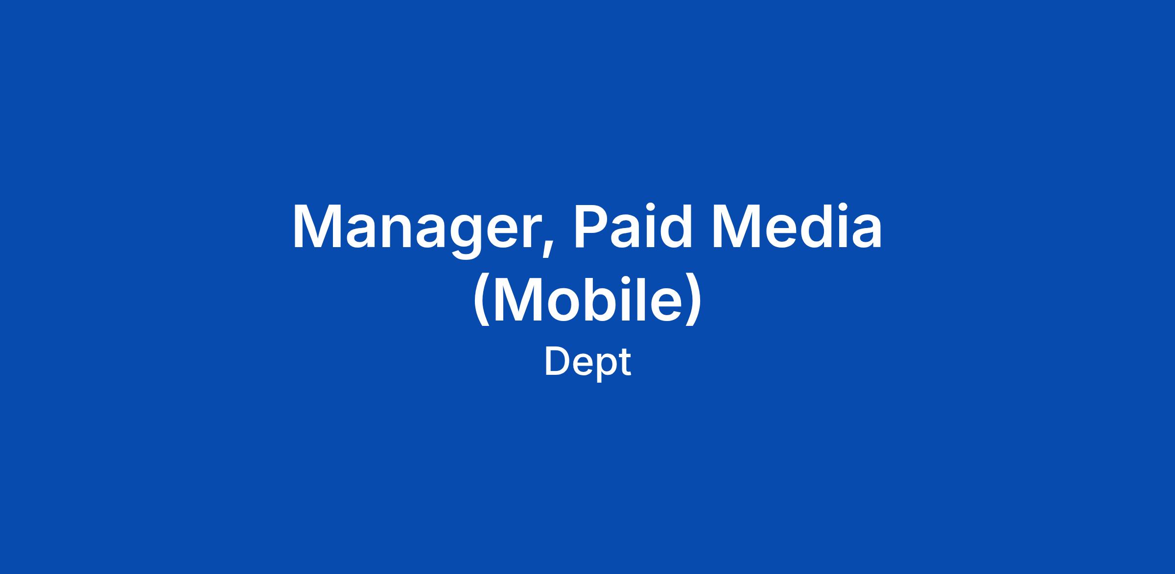 As a Manager, Paid Media (Mobile) you are a detail-oriented, hands-on marketer with a strong interest in mobile app acquisition and growth. You are comfortable owning execution, managing day-to-day performance, and communicating directly with clients and partners. You thrive in fast-paced environments, are ea