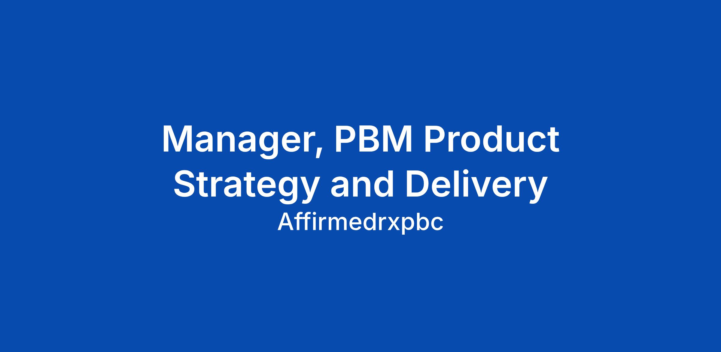 Manager, PBM Product Strategy and Delivery