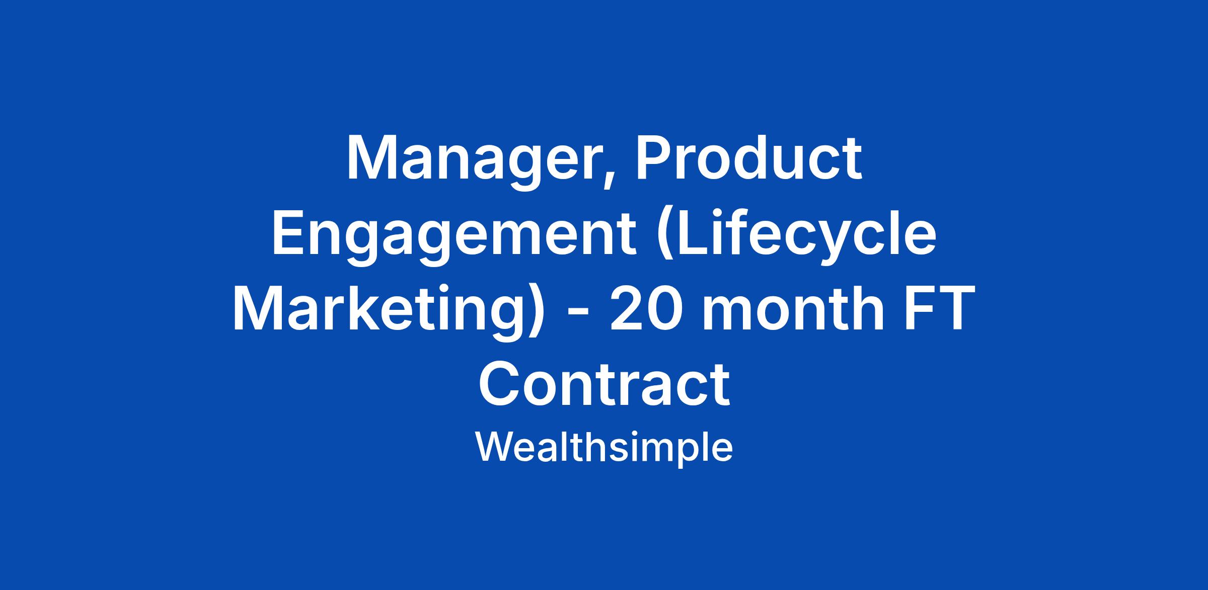 Manager, Product Engagement (Lifecycle Marketing) - 20 month FT Contract