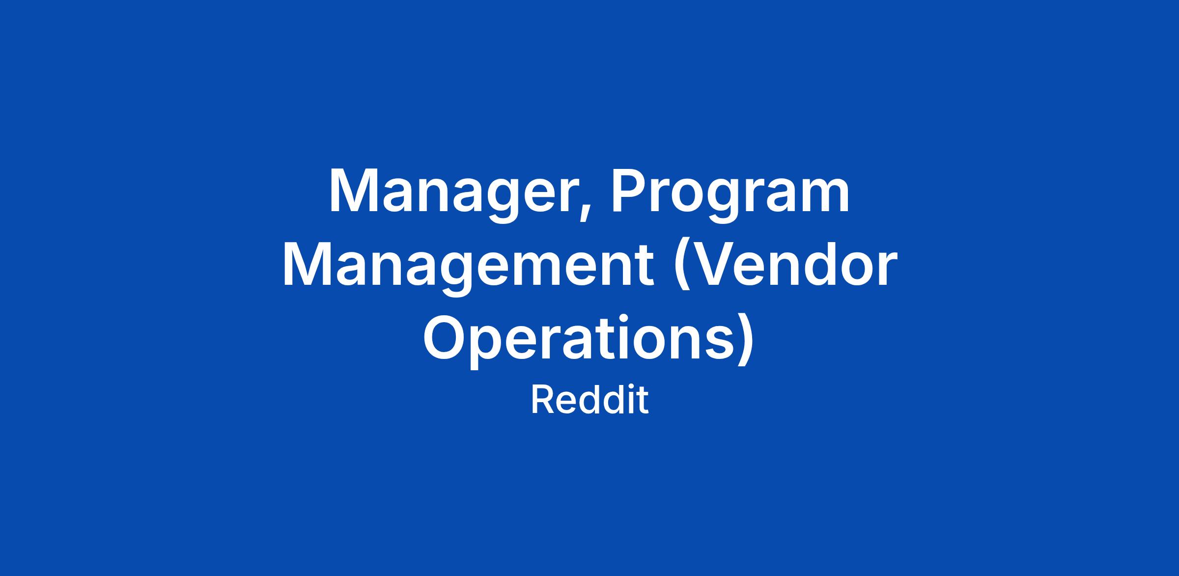 Manager, Program Management (Vendor Operations)