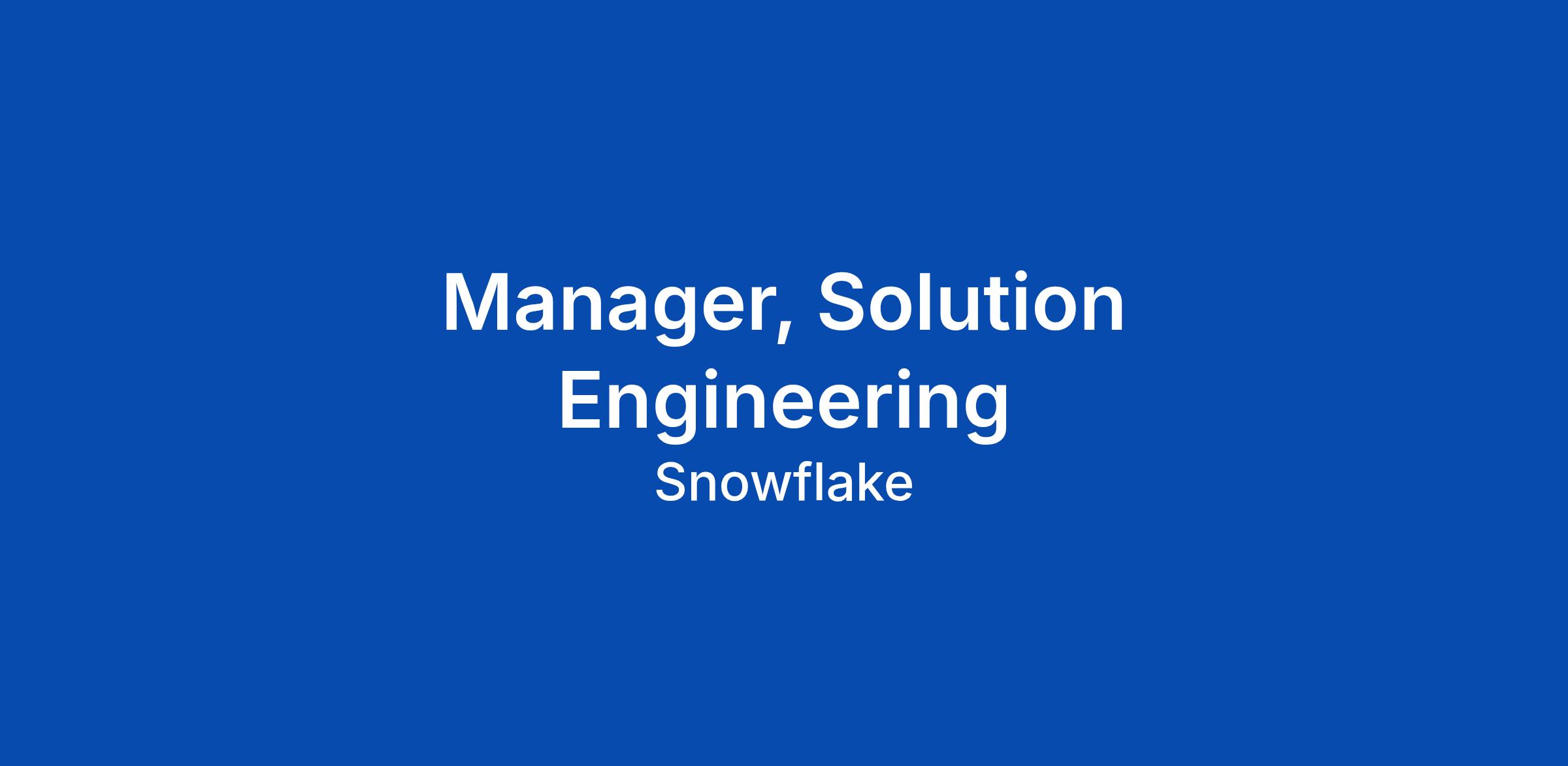 At Snowflake, we are powering the era of the agentic enterprise. To usher in this new era, we seek AI-native thinkers across every function who are energized by the opportunity to reinvent how they work. You donβt just use tools; you possess an innate curiosity, treating AI as a high-trust collaborator that is core to how you solve problems and accelerate your impact. We look for low-ego individuals who thrive in dynamic and fast-moving environments and move with an experimental mindset β who rapidly test emerging capabilities to discover simpler, more powerful ways to deliver results. At Snowflake, your role isn't just to execute a function, but to help redefine the future of how work gets done. Our Majors Solution Engineering organization is seeking a Manager of Solution Engineering to lead a highly skilled team of Solution Engineers across Healthcare & Life Sciences who provide value-based evaluation scenarios including demonstrations, labs and POCs. In addition to managing a team, you will work directly with our sales team and channel partners to understand the needs of our enterprise customers, strategize on how to navigate sales cycles, and close business. IN THIS ROLE YOU WI