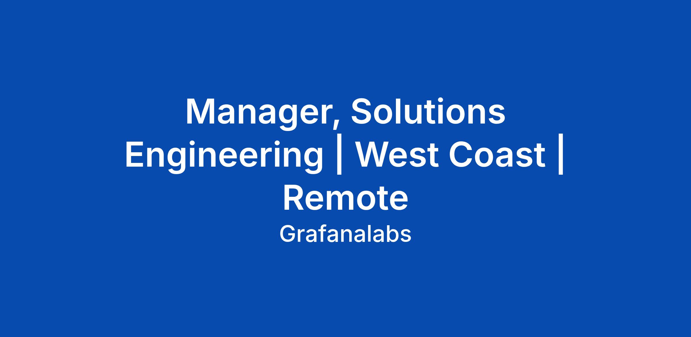 Manager, Solutions Engineering | West Coast | Remote