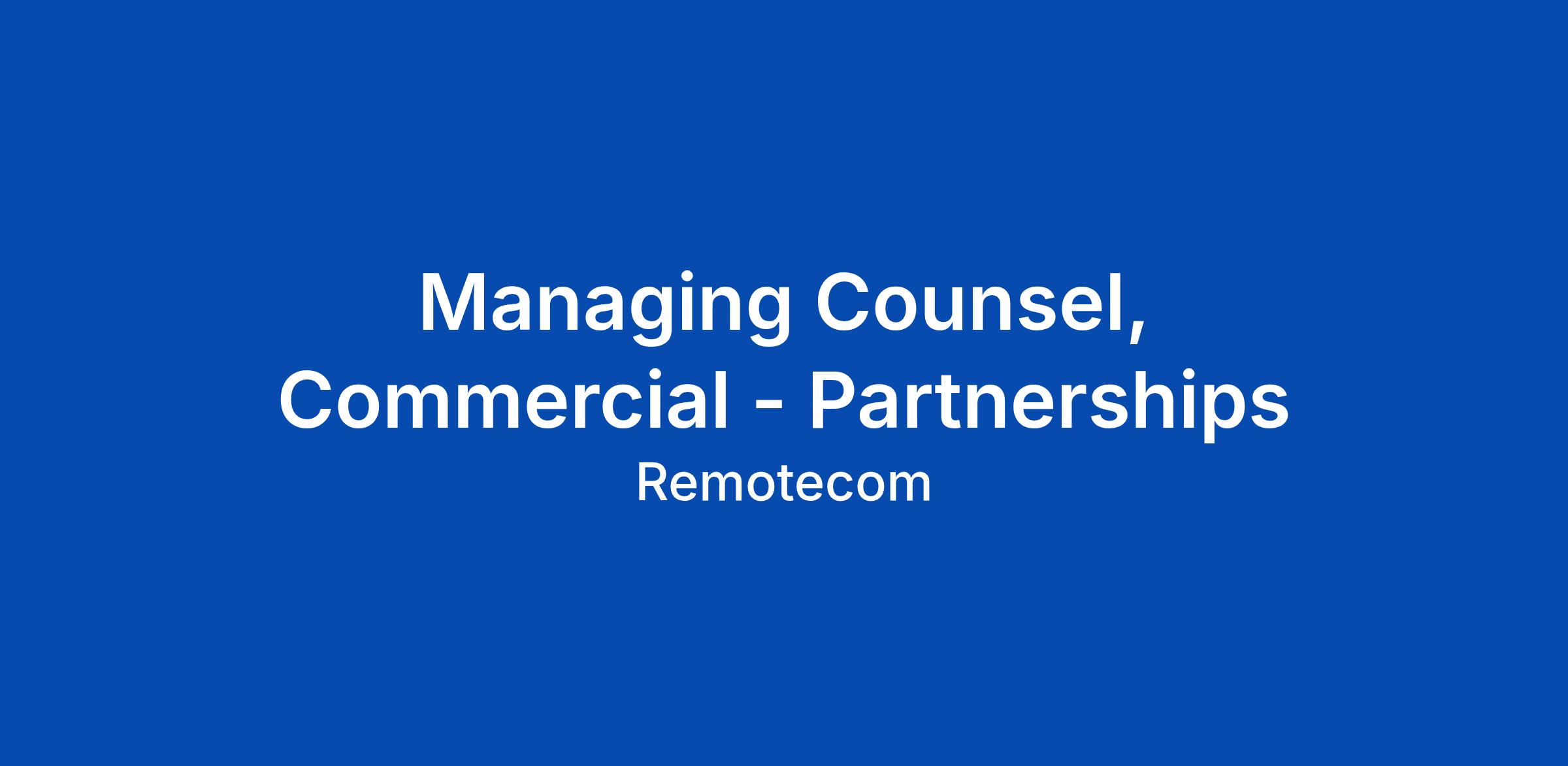 Managing Counsel, Commercial - Partnerships