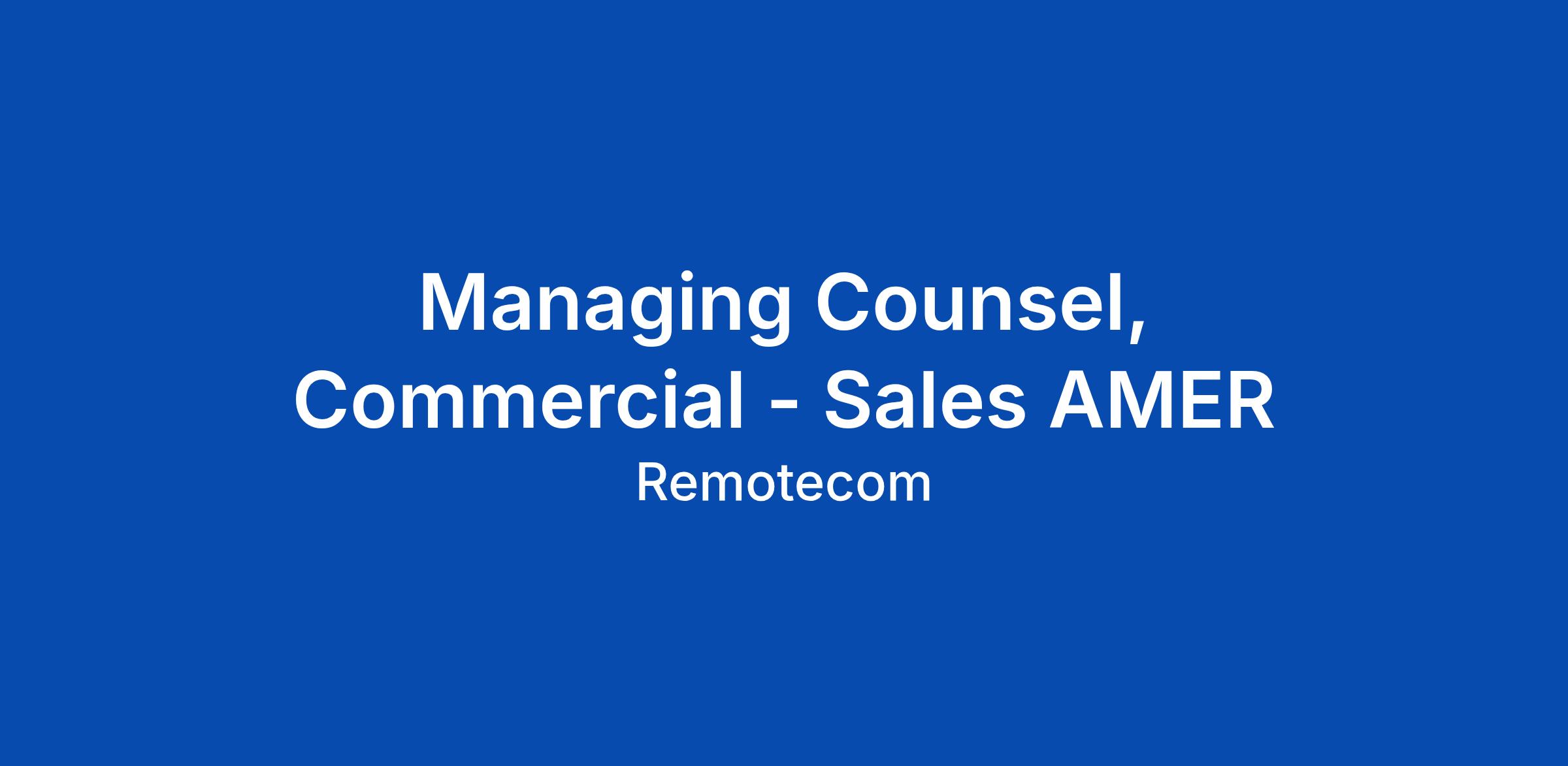 Managing Counsel, Commercial - Sales AMER