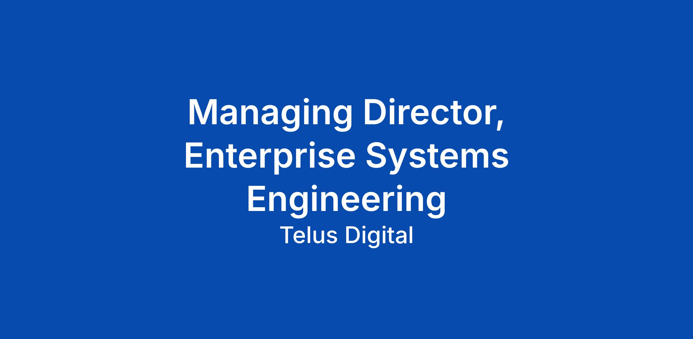 Managing Director, Enterprise Systems Engineering