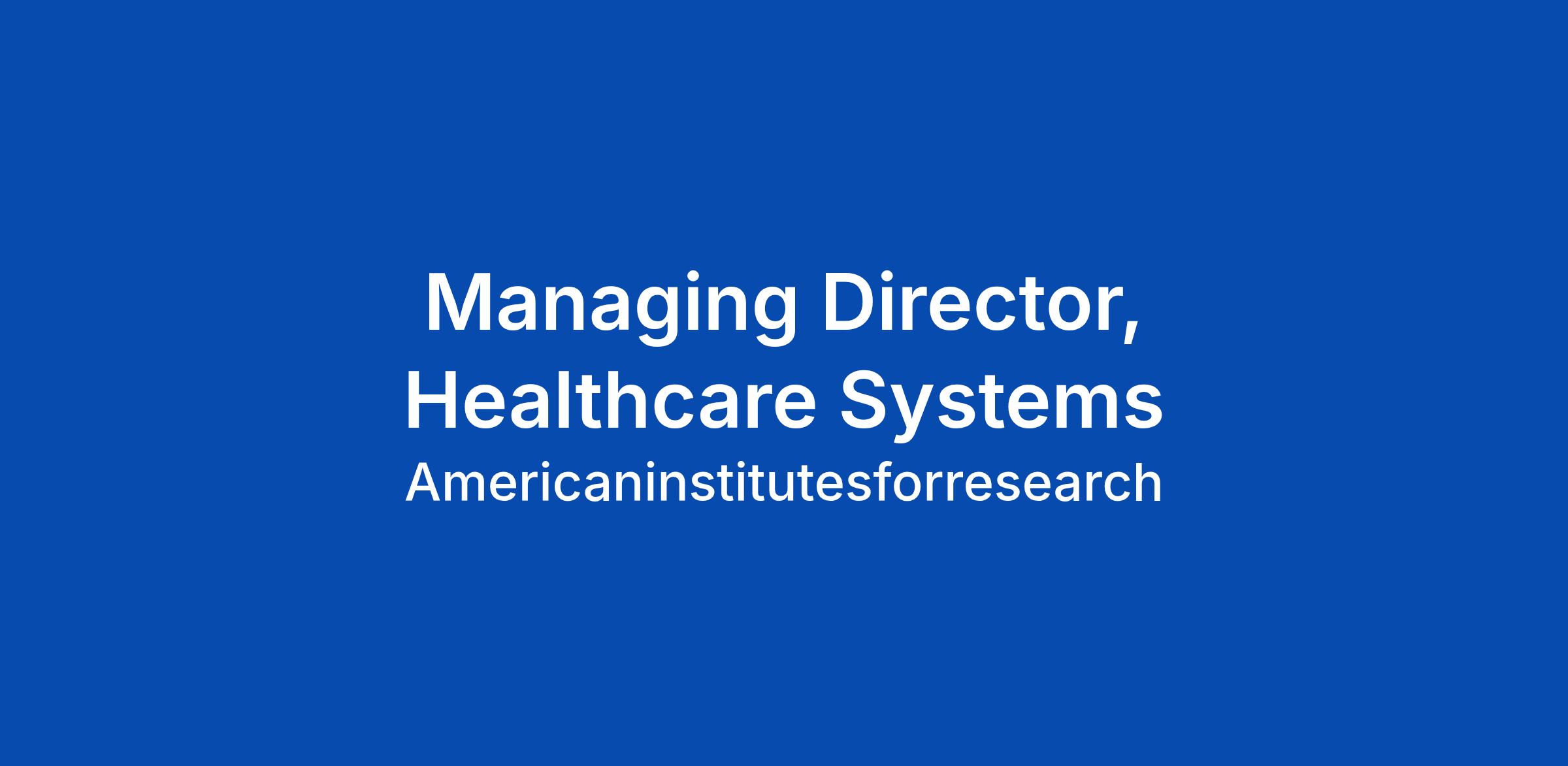 Managing Director, Healthcare Systems