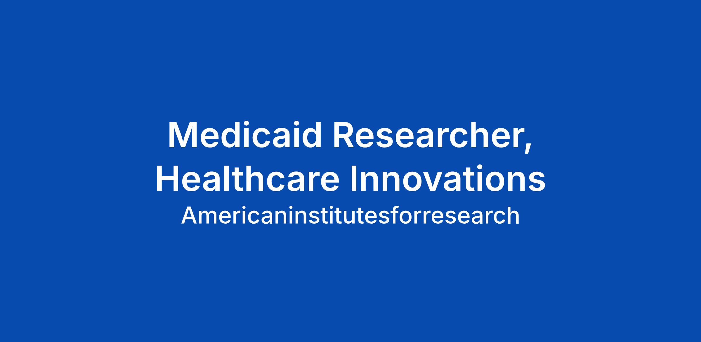Medicaid Researcher, Healthcare Innovations