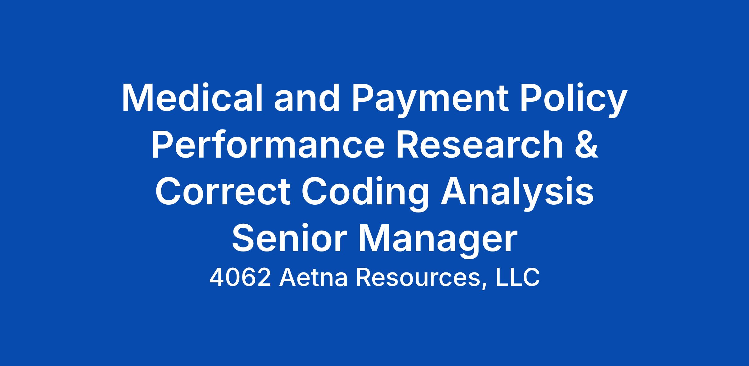 The Senior Manager, Medical and Payment Policy Performance Research and Correct Coding Analysis independently develops and manages assigned policy and coding reviews by evaluating clinical and payment policies and identifying potential issues. This position ensures coding aligns with defined medical and pre-payment policies, identifies opportunities to optimize performance, and supports organizational goals and regulatory requirements. The role partners closely with claims operations to apply policy intent across end-to-end claims processing (intake, edits, adjudication, denials, appeals, and adjustments) and to drive consistent, compliant outcomes.