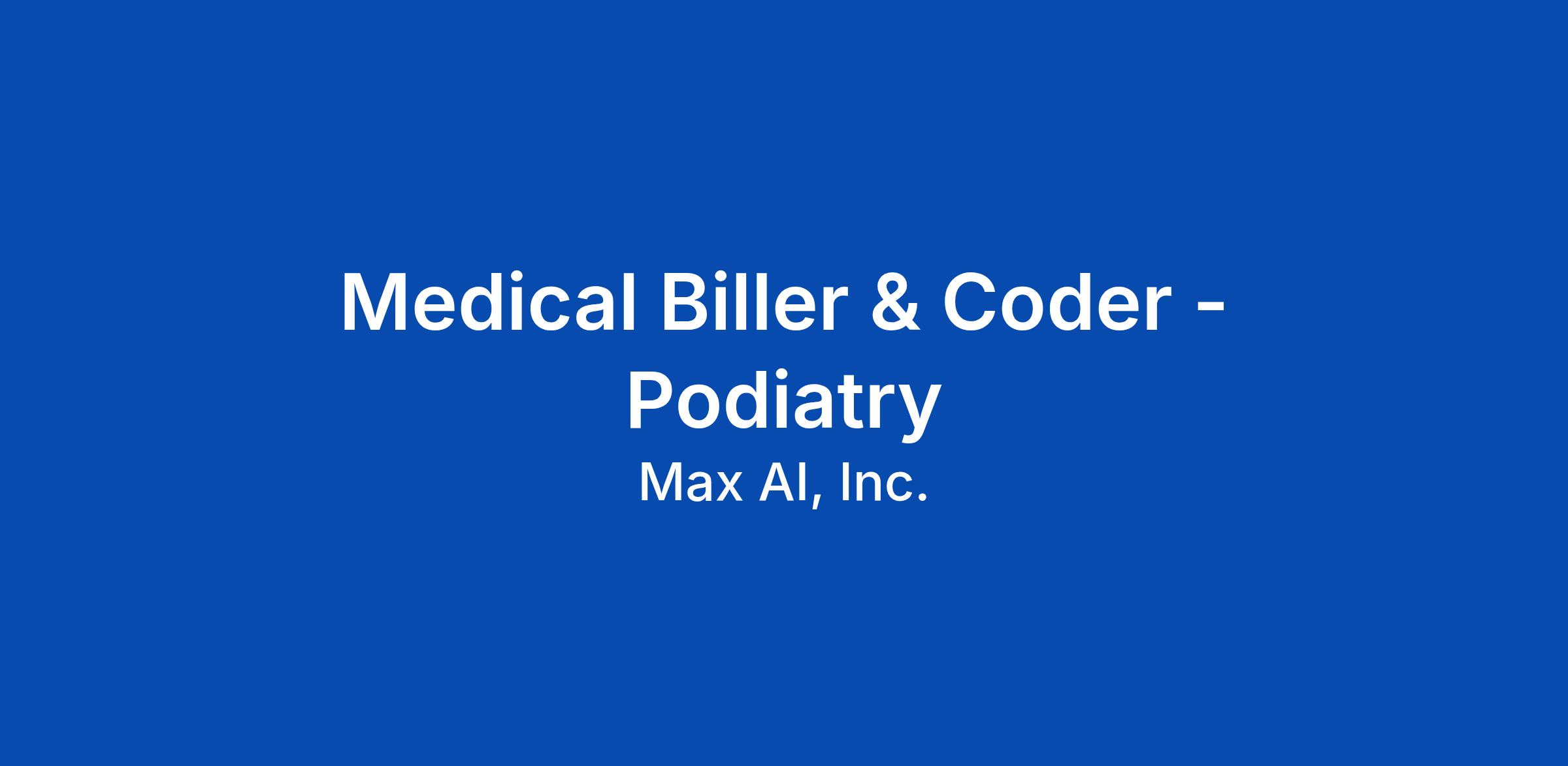 We are seeking a detail-oriented and knowledgeable Medical Biller and Coder for Podiatry Department to join our healthcare team. The ideal candidate will be responsible for managing the billing process, ensure accuracy in medical coding, and facilitating timely payments from ins...