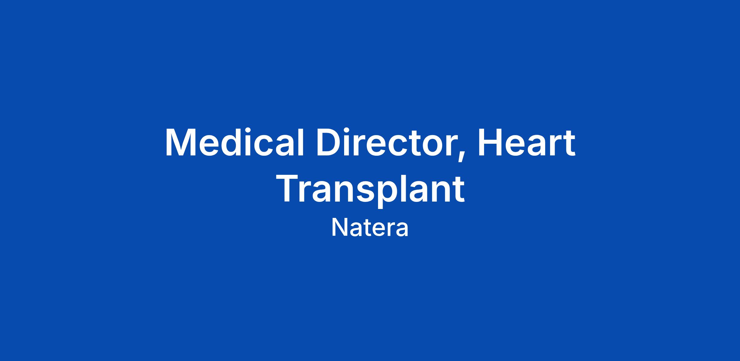 The Medical Director, Heart Transplant is a critical leadership role that dictates Natera’s success by influencing usage and confidence in molecular diagnostics into routine medical practice. This will initially be an individual contributor role with opportunity to build a team as the business grows. The job location can be remote with ~50% travel.