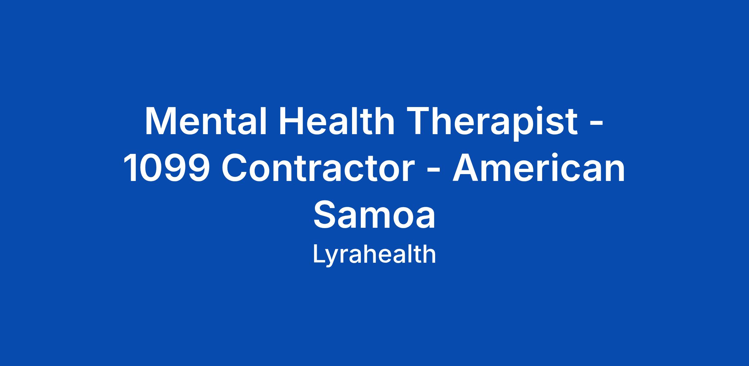 Mental Health Therapist - 1099 Contractor - American Samoa