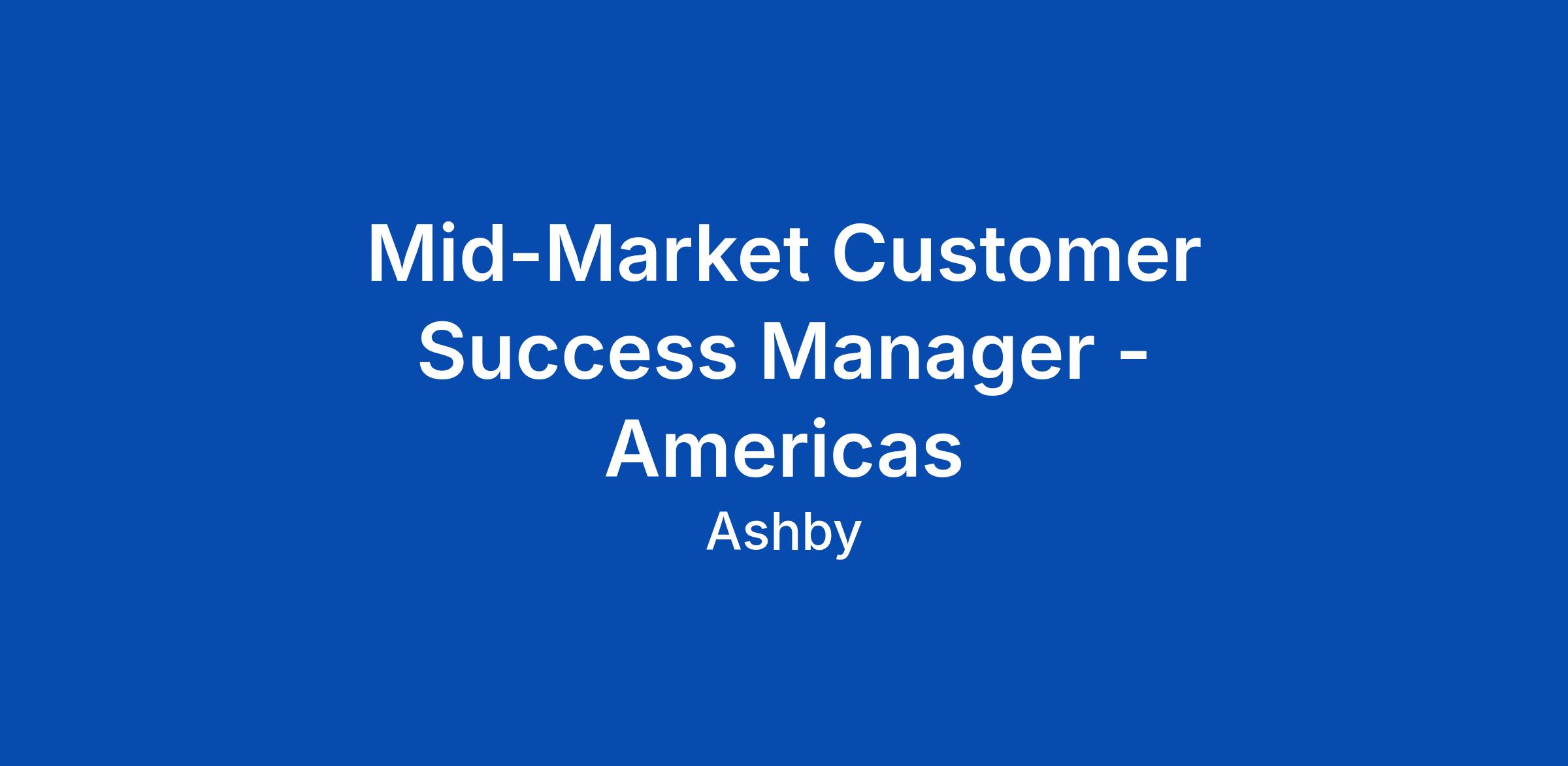 Mid-Market Customer Success Manager - Americas