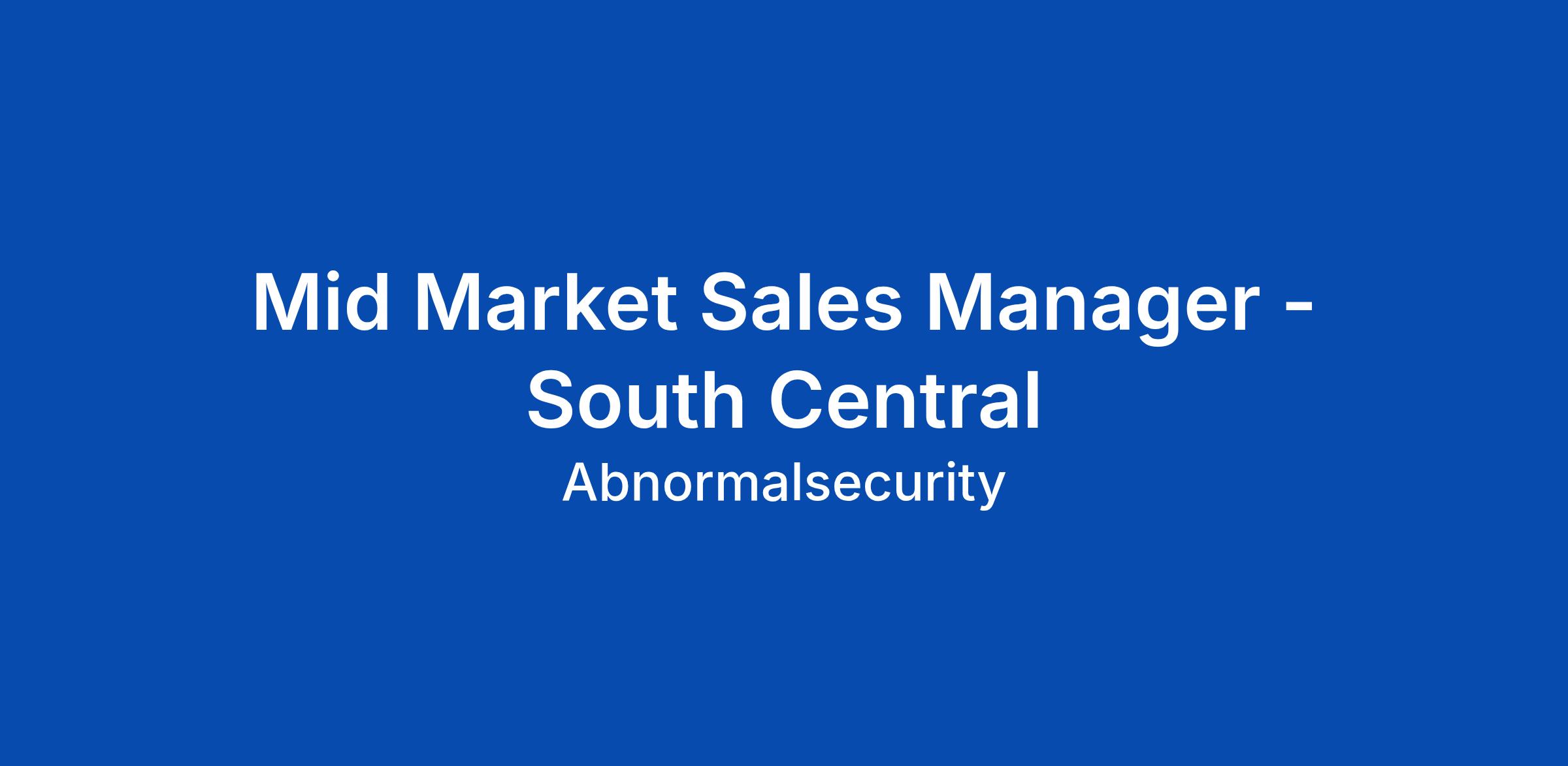 Mid Market Sales Manager - South Central