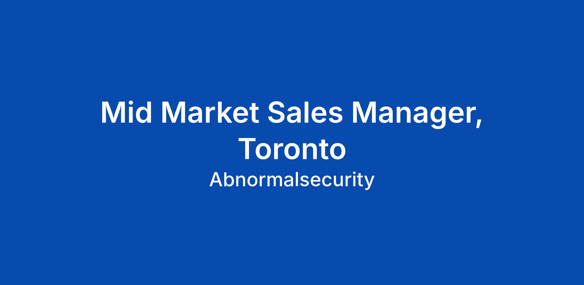 Mid Market Sales Manager, Toronto