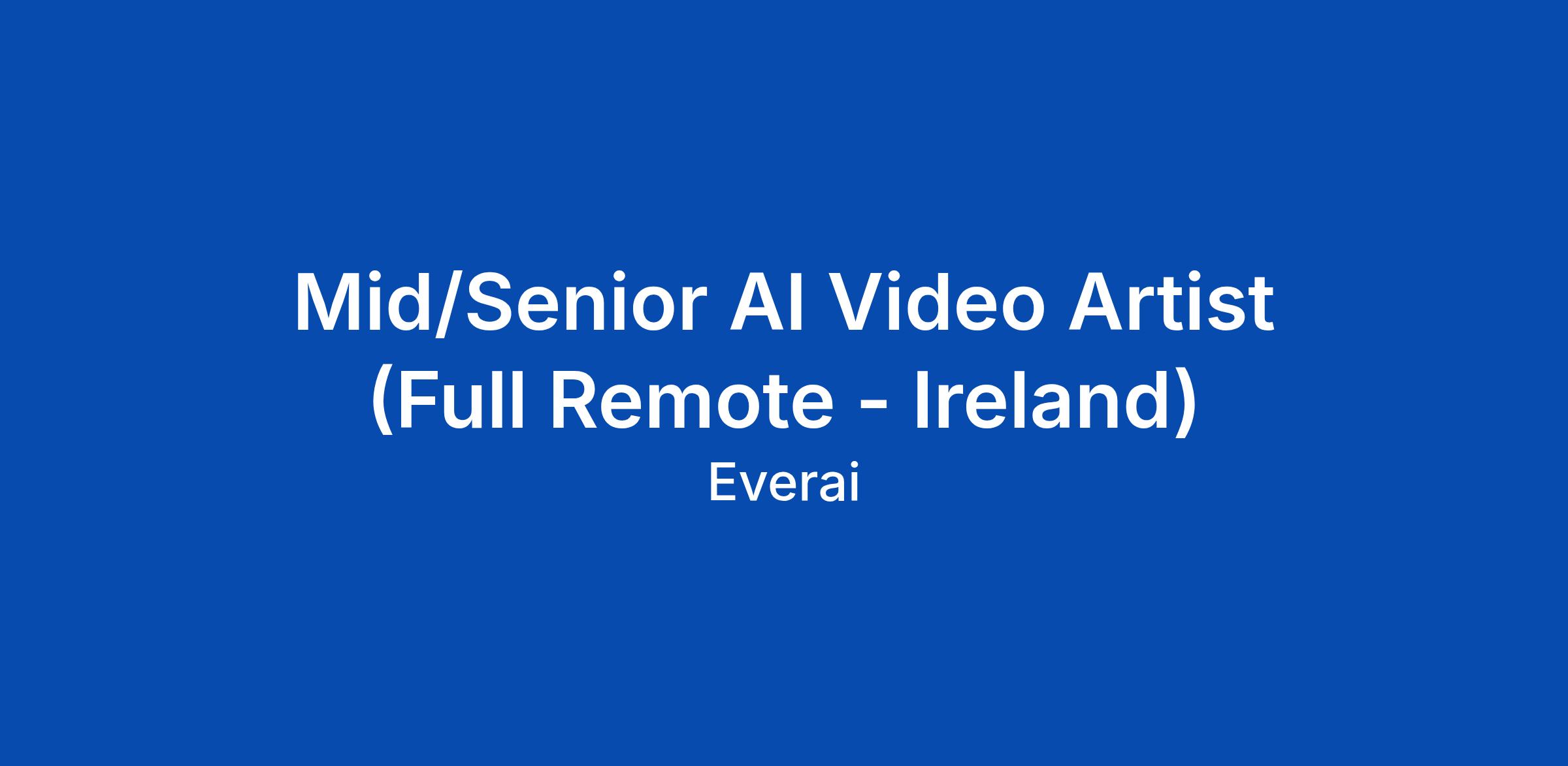 Mid/Senior AI Video Artist (Full Remote - Ireland)