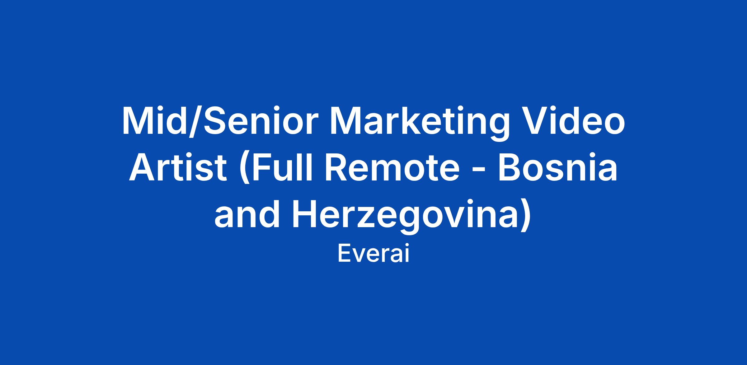 Mid/Senior Marketing Video Artist (Full Remote - Bosnia and Herzegovina)