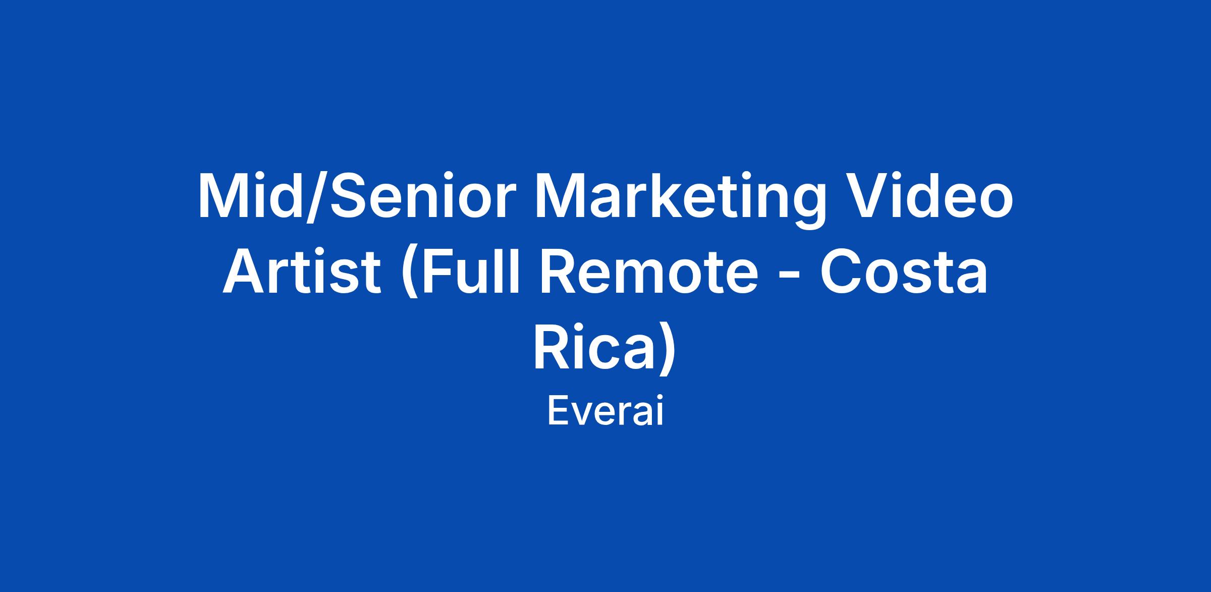 Mid/Senior Marketing Video Artist (Full Remote - Costa Rica)