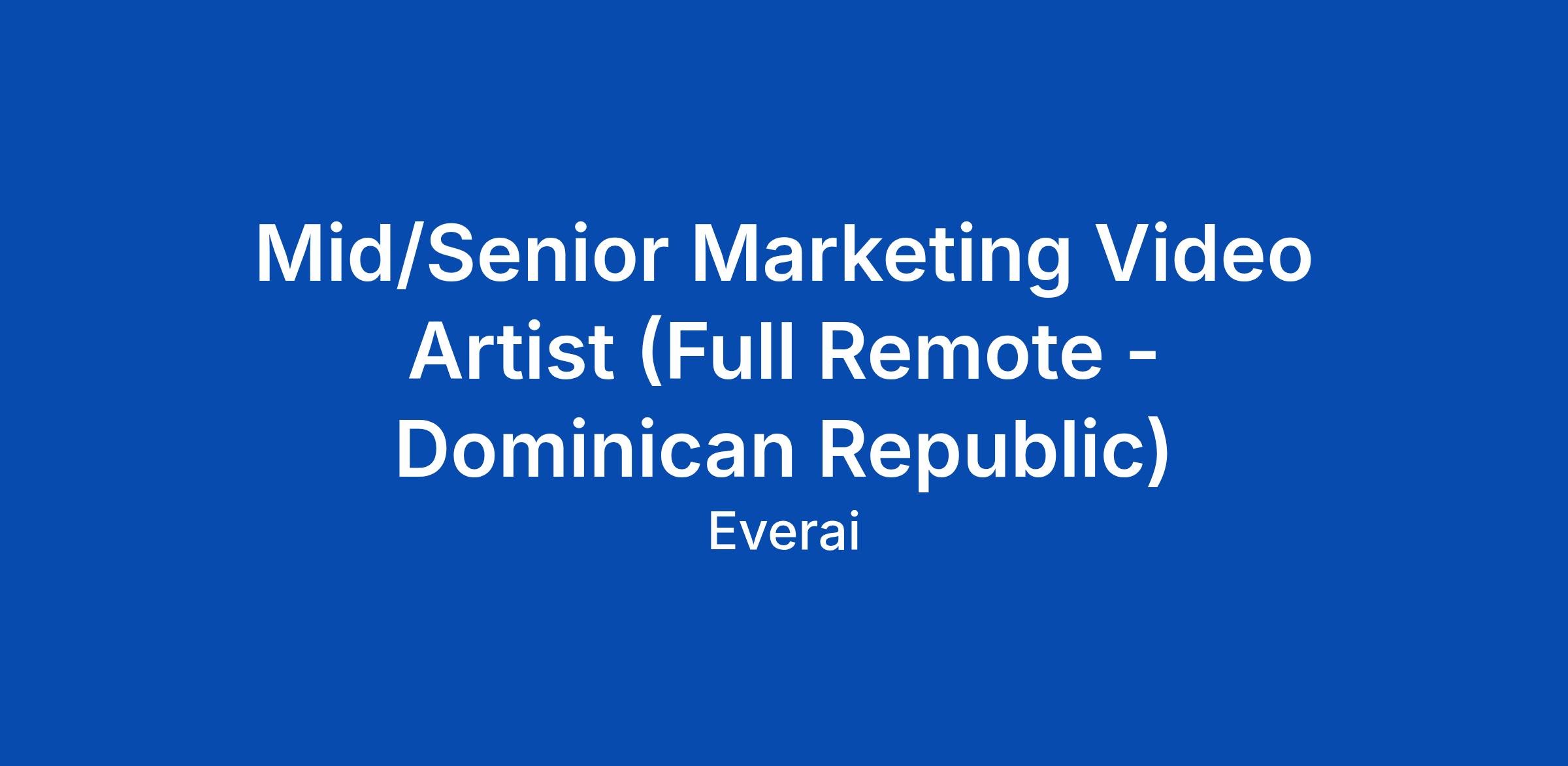 Mid/Senior Marketing Video Artist (Full Remote - Dominican Republic)
