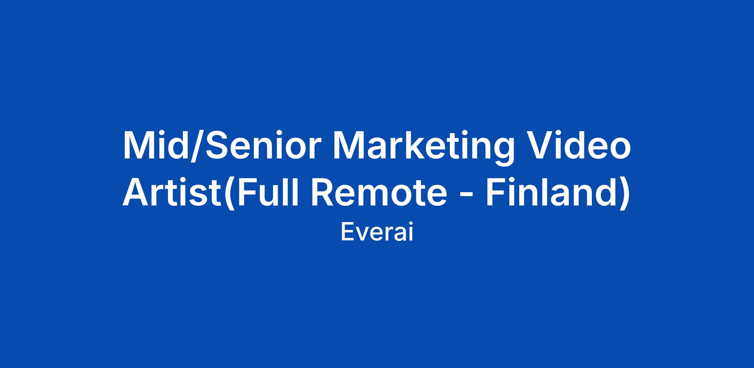 Mid/Senior Marketing Video Artist(Full Remote - Finland)